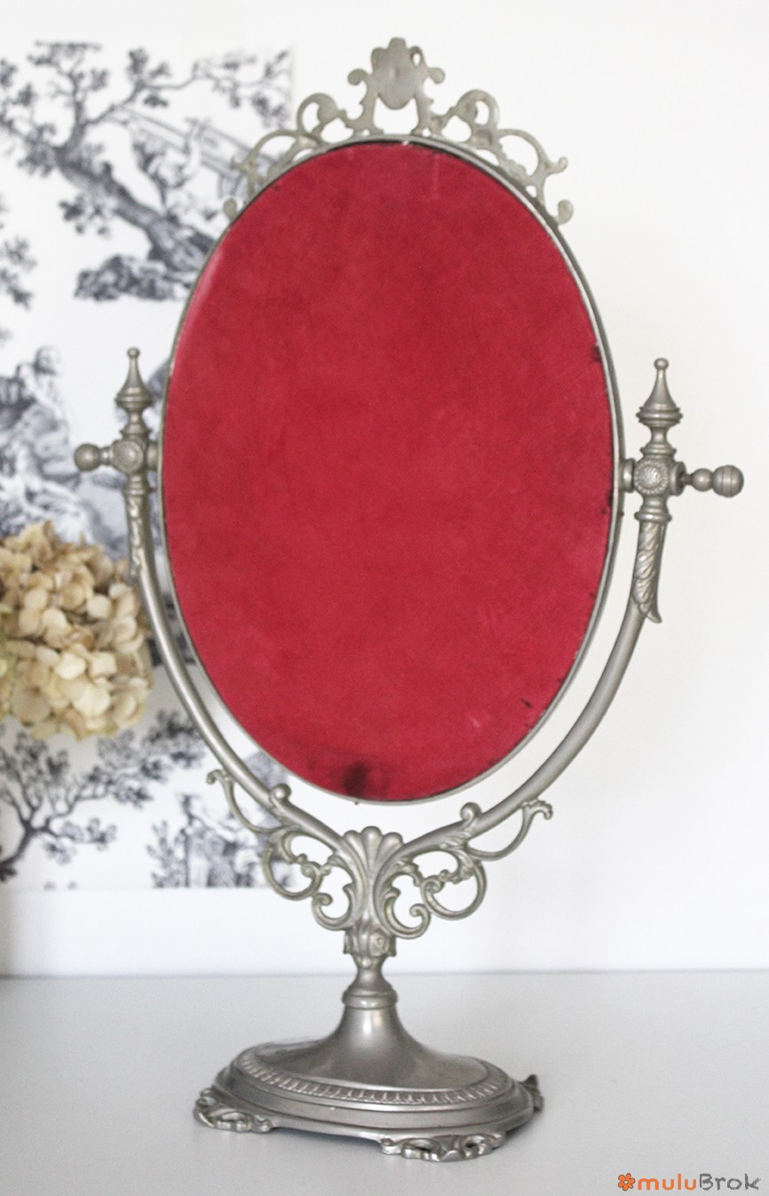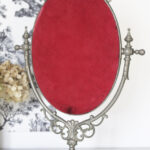 Miroir pivotant. Dos protégé par un velours rouge.