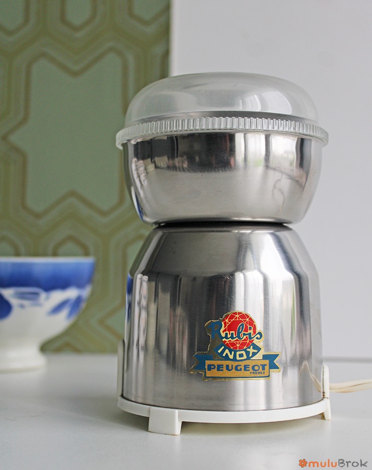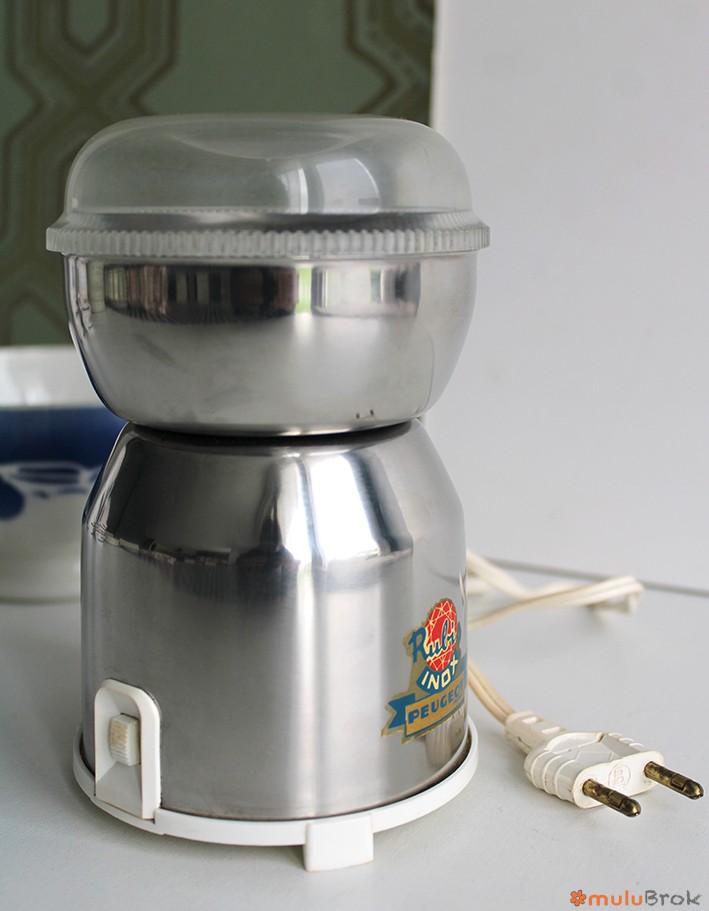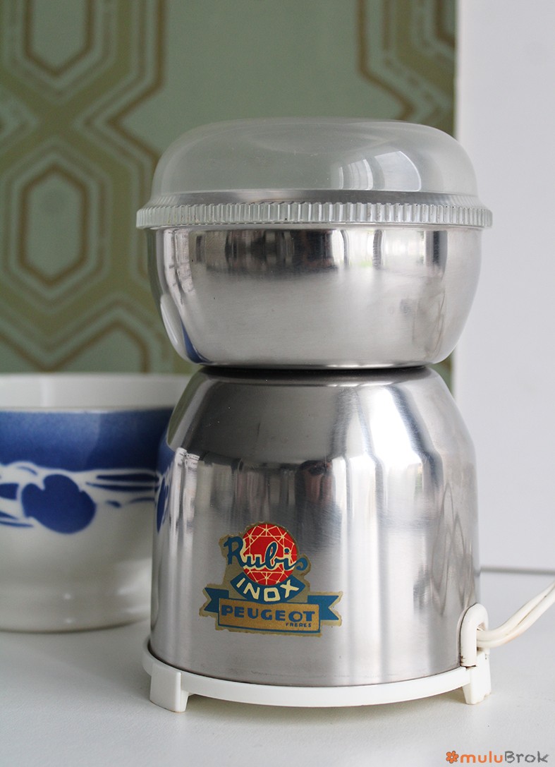 Ancien moulin à café électrique Peugeot Frères modèle Rubis Inox.