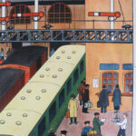 la locomotive à vapeur, les wagons, la foule, le chef de gare, un serveur…