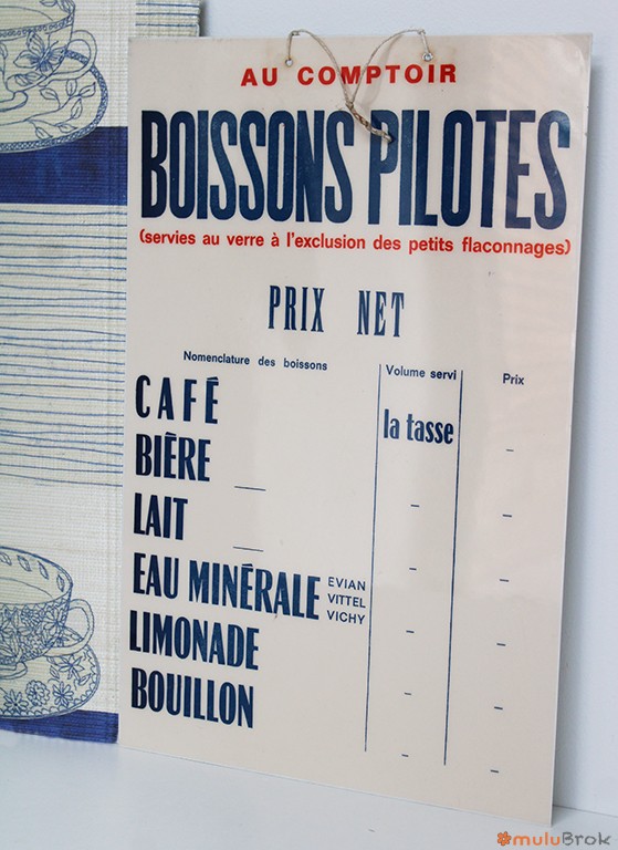 Ancien panneau de commerce tarif des consommations au comptoir.