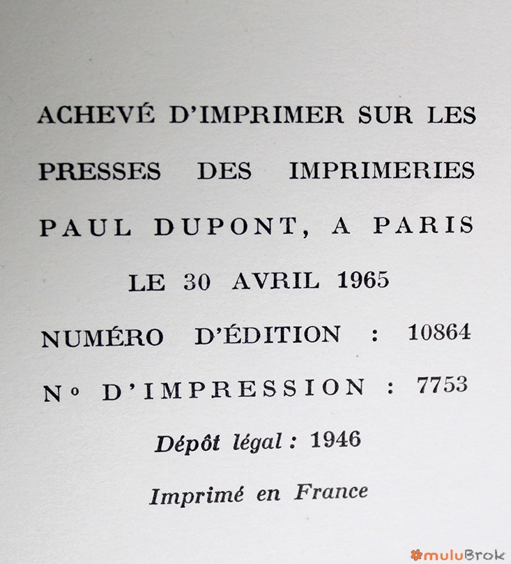 Achevé d’imprimer le 30 avril 1965.