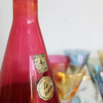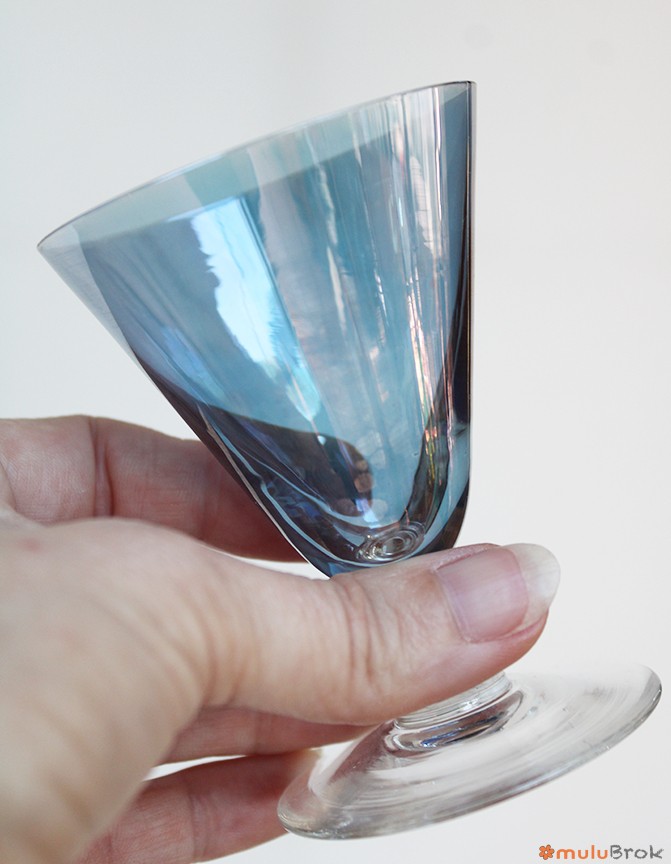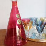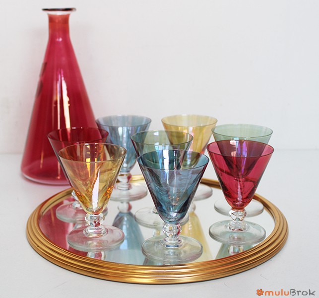Vaisselle ancienne, service à liqueur, la carafe et ses 8 verres à pied.