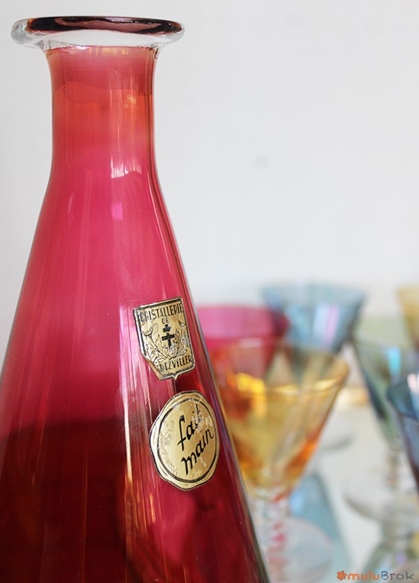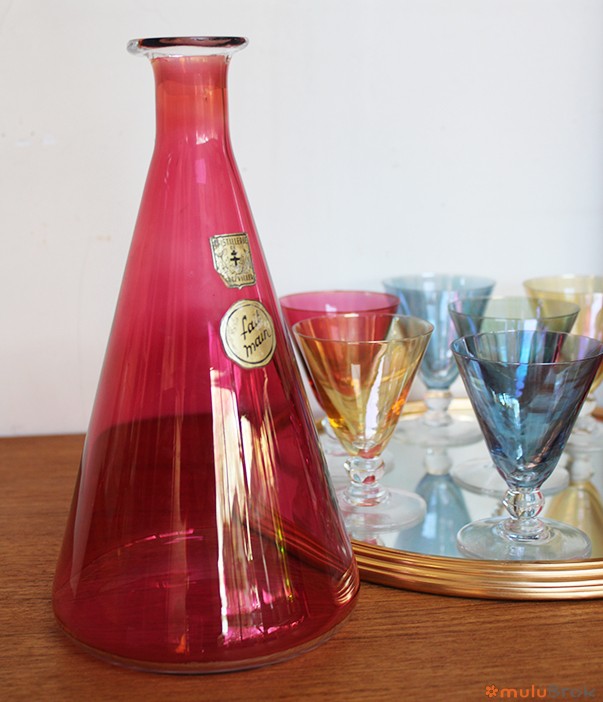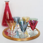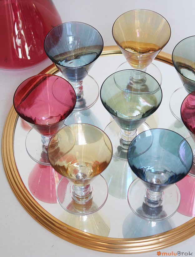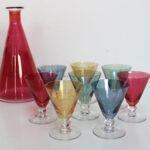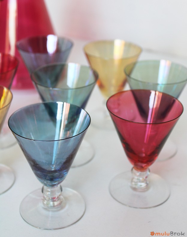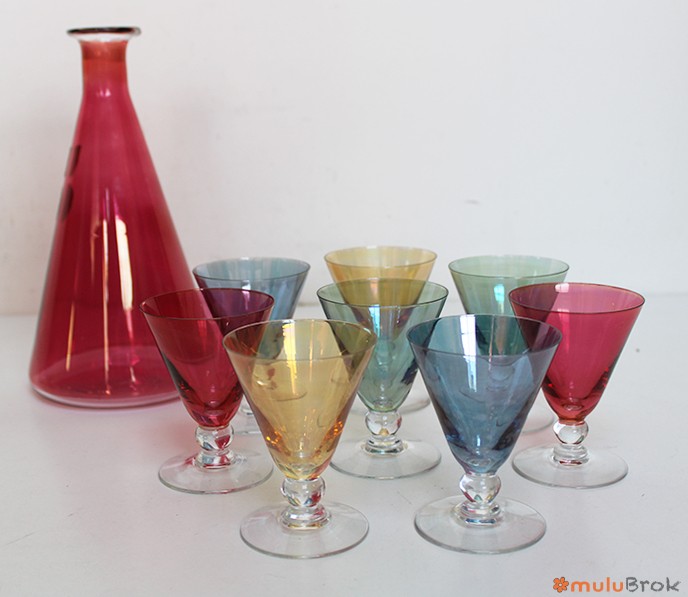 1 Carafe + 8 Verres à pied (2 verts / 2 bleus / 2 roses / 2 jaunes) .
