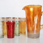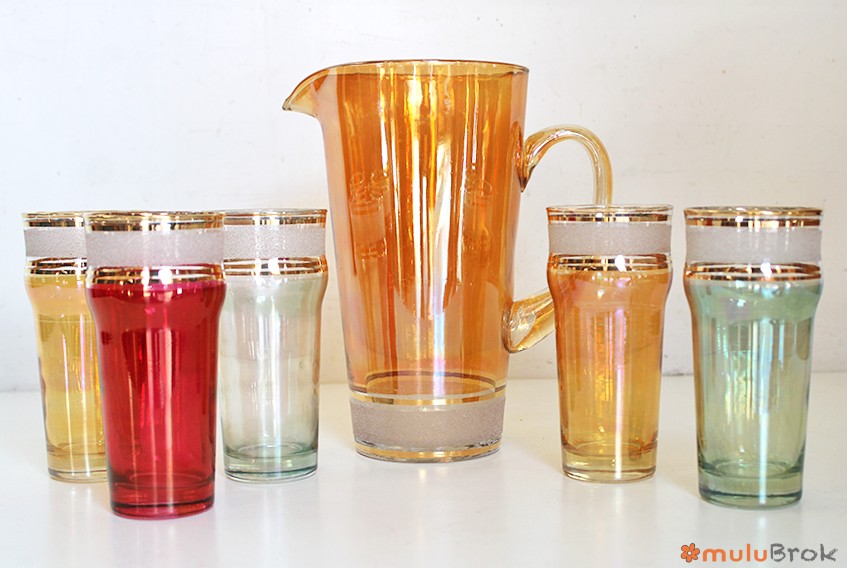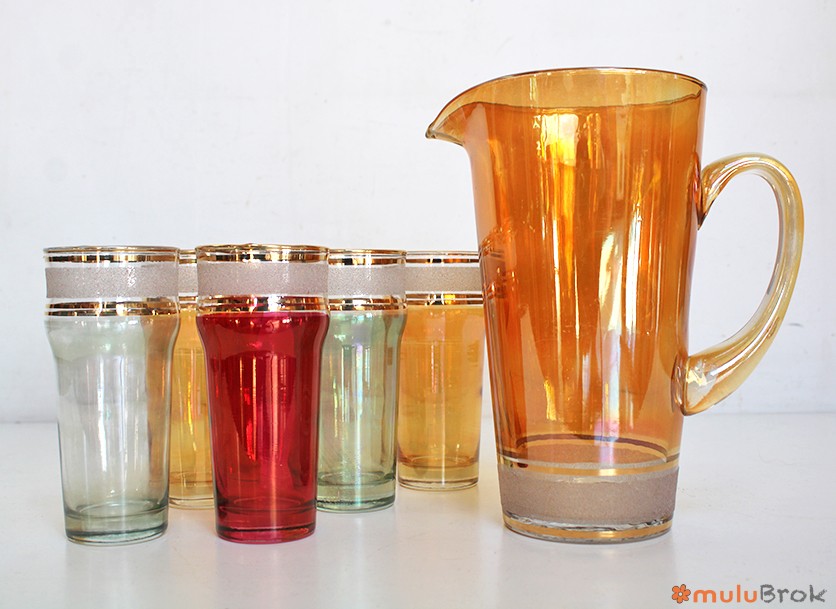 1 Pichet orange + 5 Verres (2 orange / 1 transparent / 1 rouge / 1 vert)