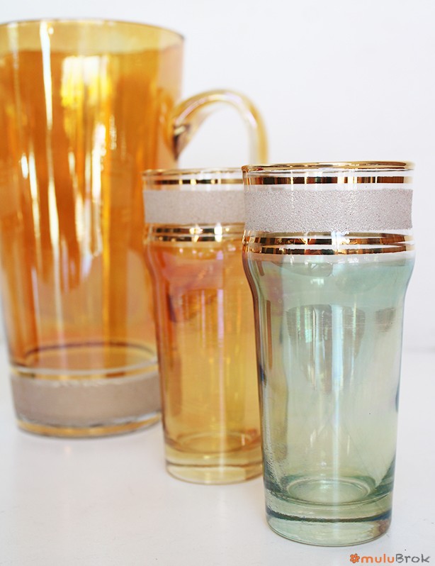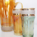 Vaisselle ancienne, le pichet et ses 5 grands verres.