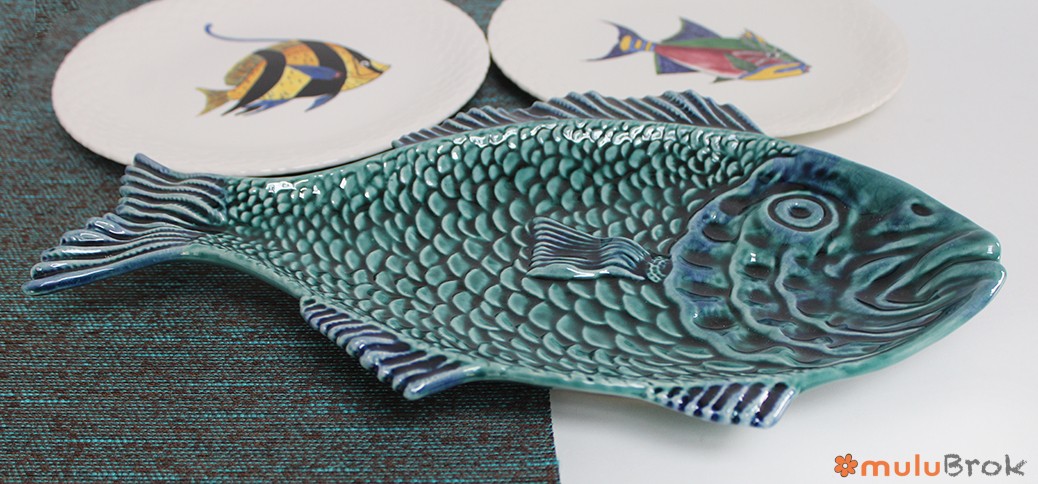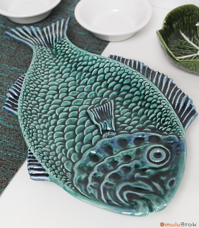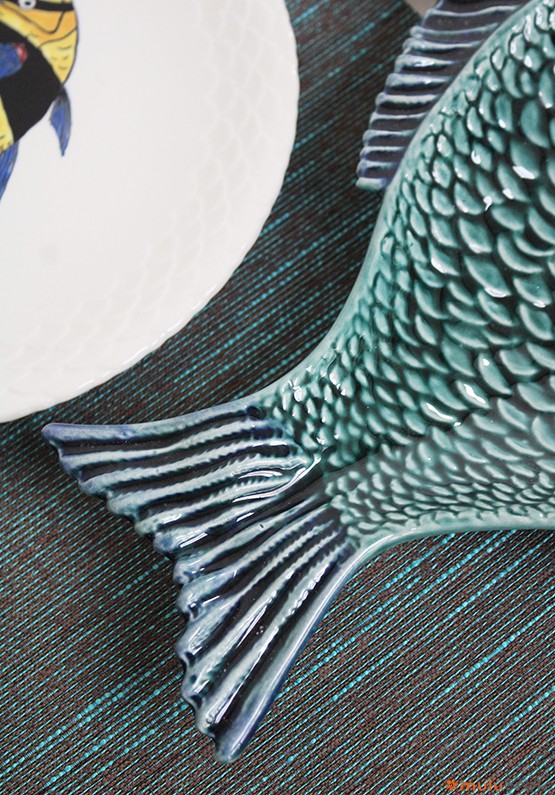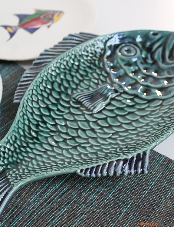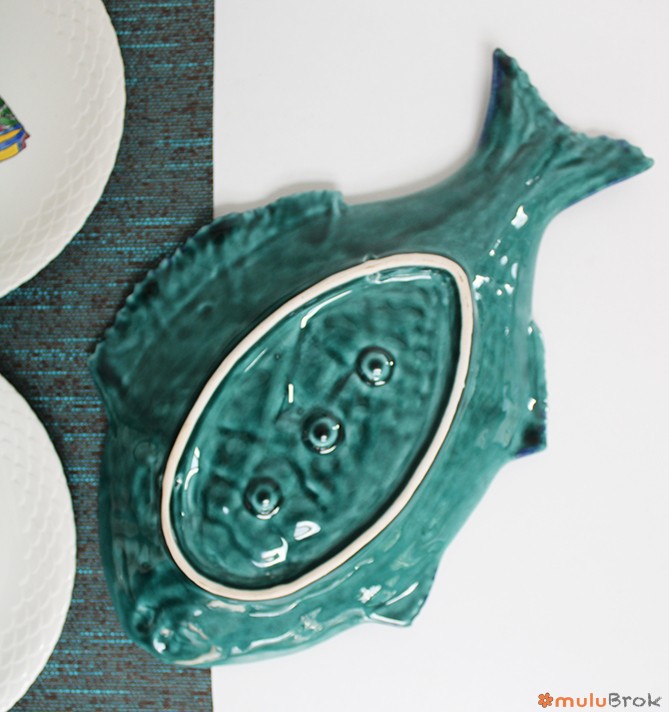 Joli coloris vert bleuté, en relief pour ce plat creux.