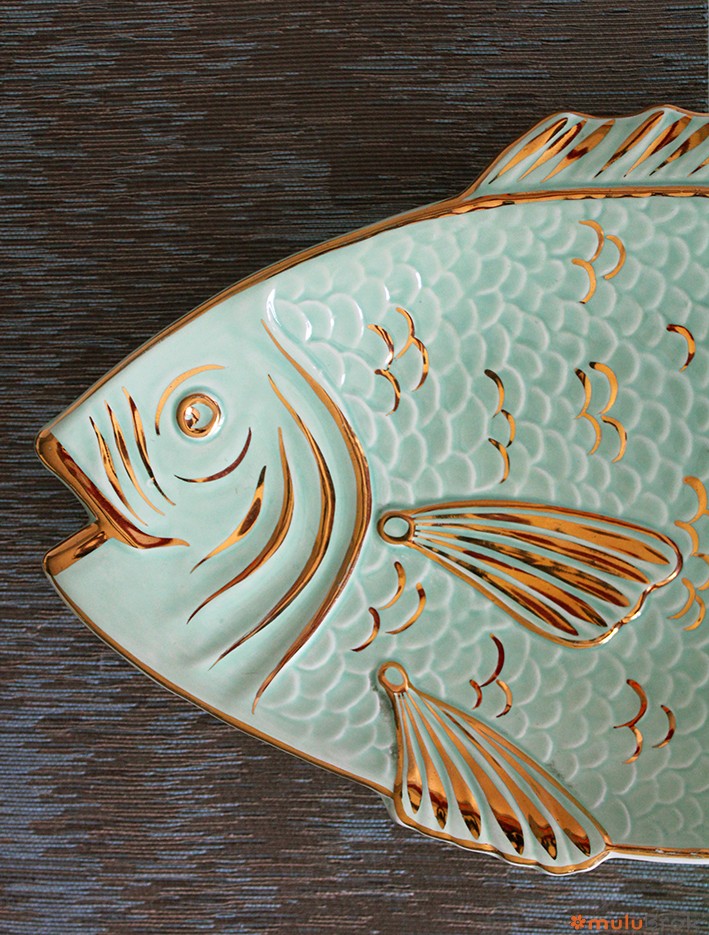 Ancien plat à poisson en céramique Silda.