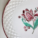 Motif : Fleurs, coloris rose et vert. Contour en relief.