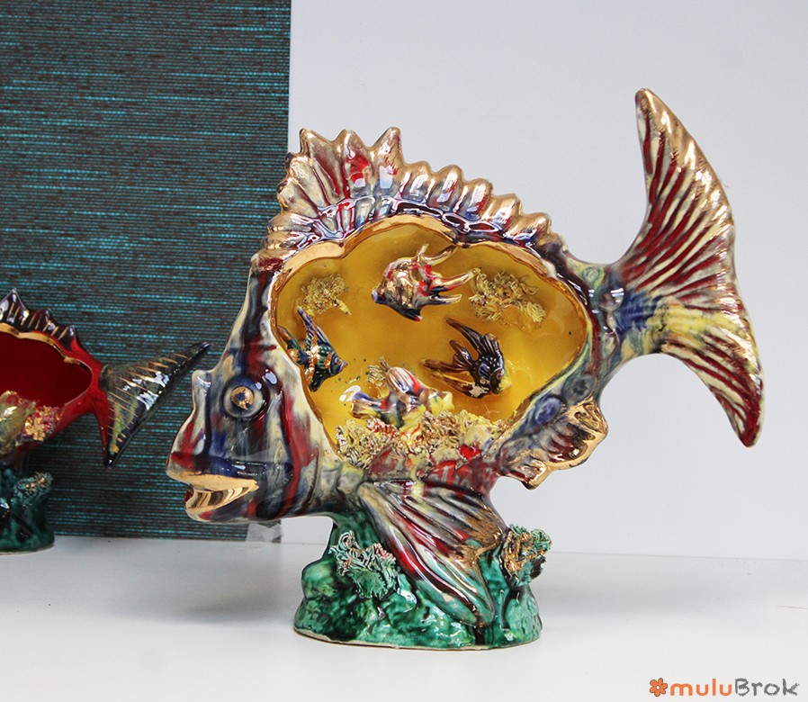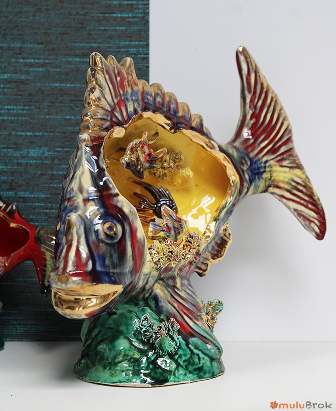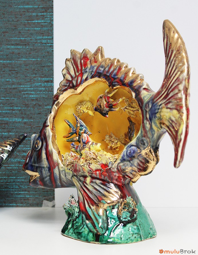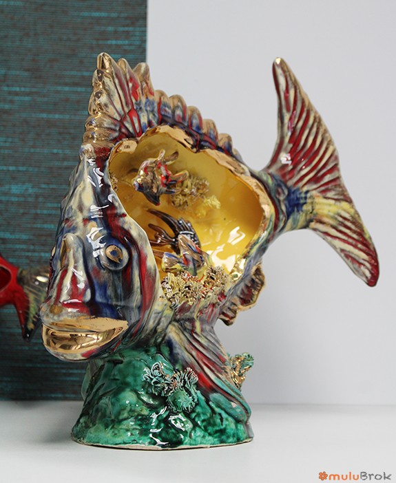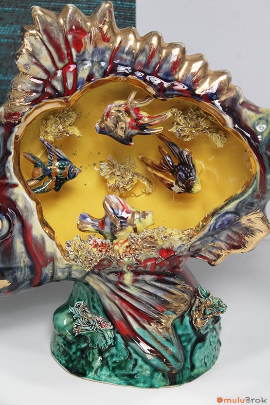 Belle décoration agrémentée de petits poissons, coquillages et coraux en relief.