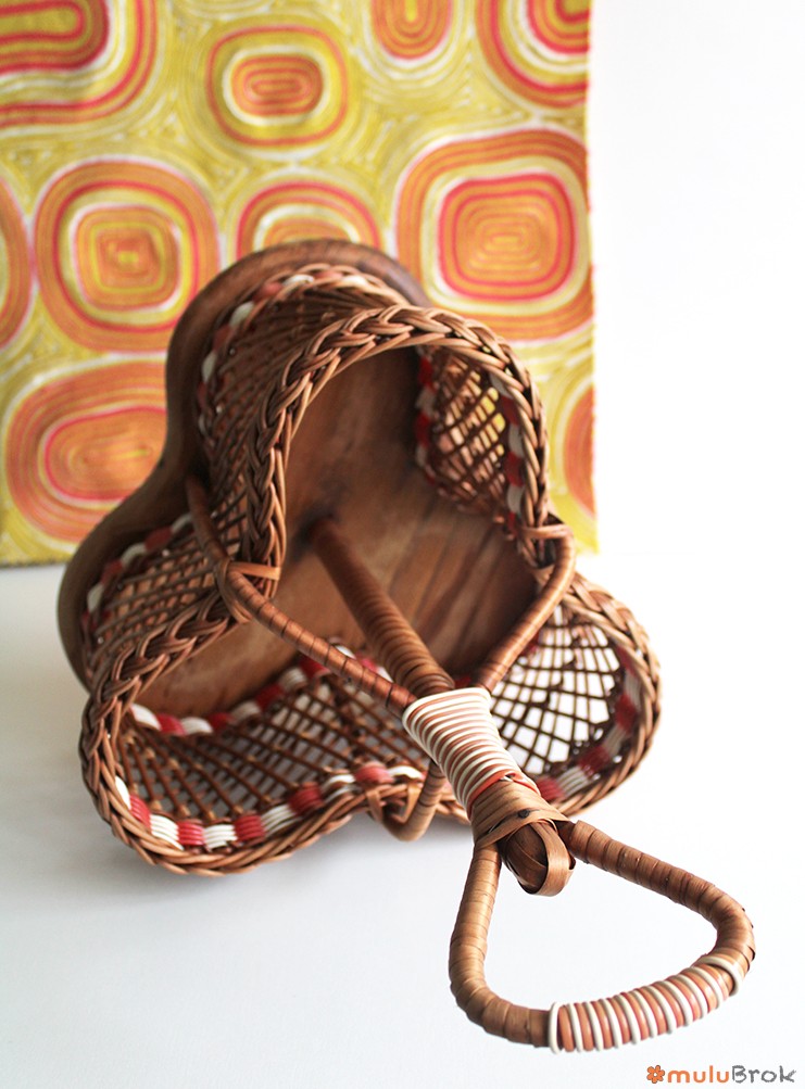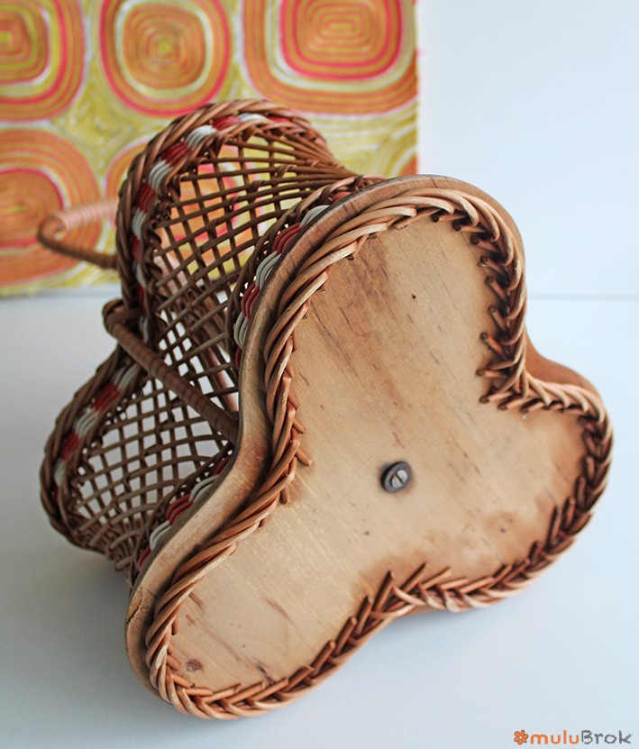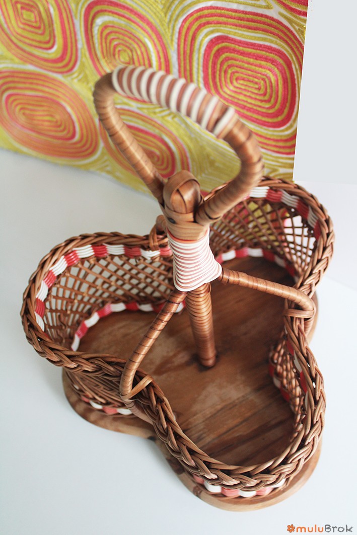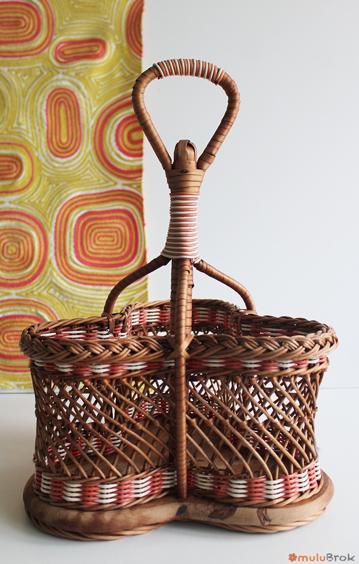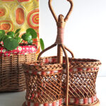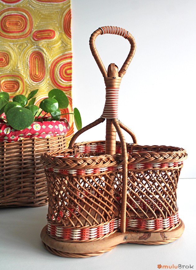 Porte bouteilles rotin et scoubidou.