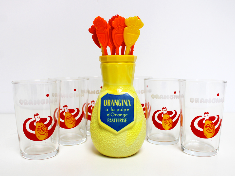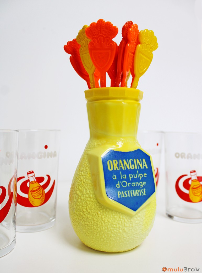 Ancien porte-pailles publicitaire de la marque Orangina.