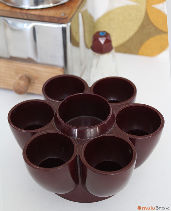 6 emplacements pour les oeufs + 1 central pour la salière.
