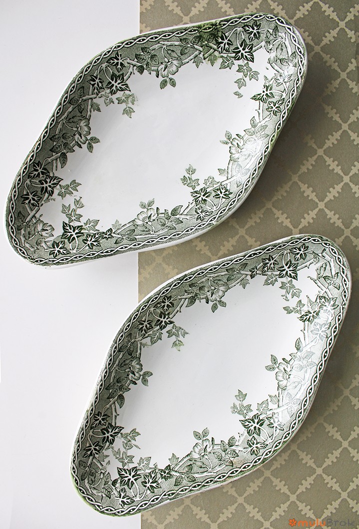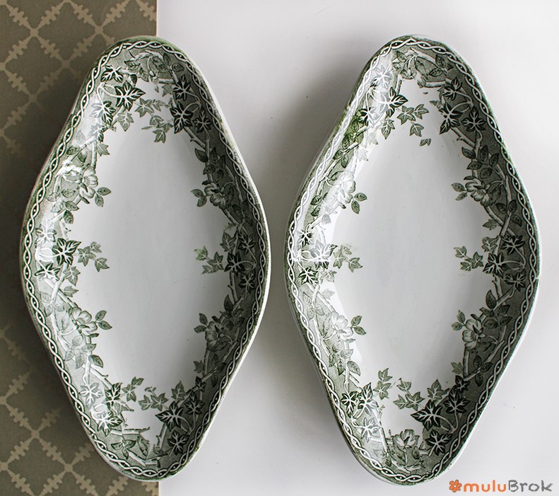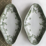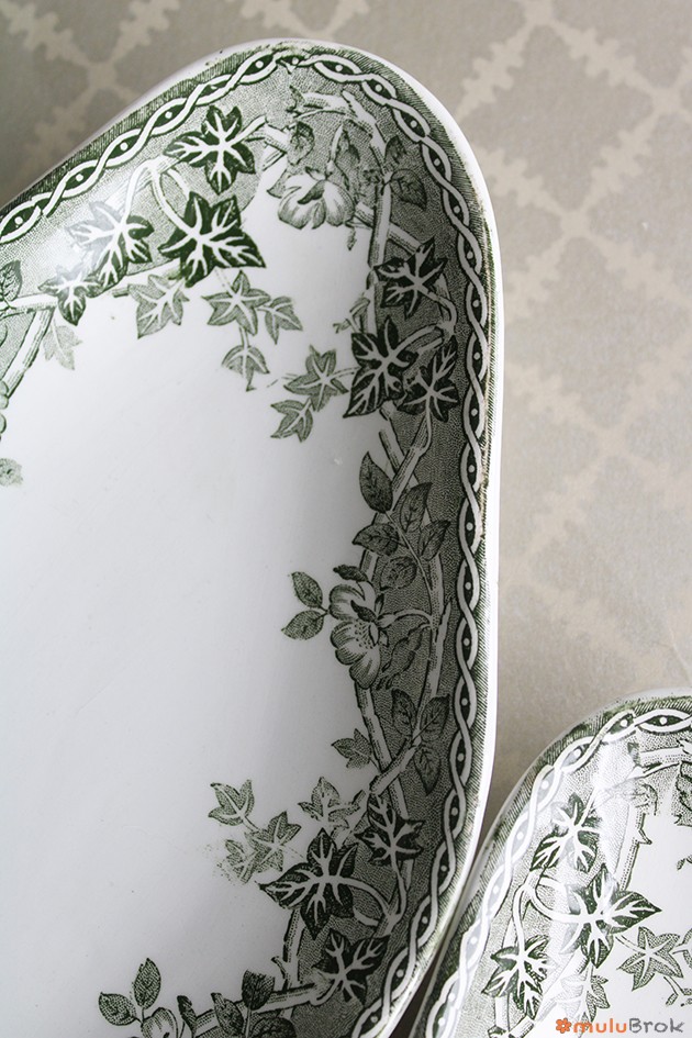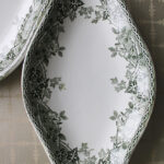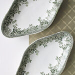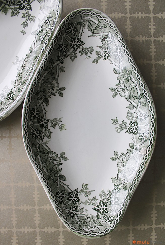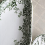 Ravier au joli motif sur contour, coloris gris et vert, fleurs, feuilles et lierre.