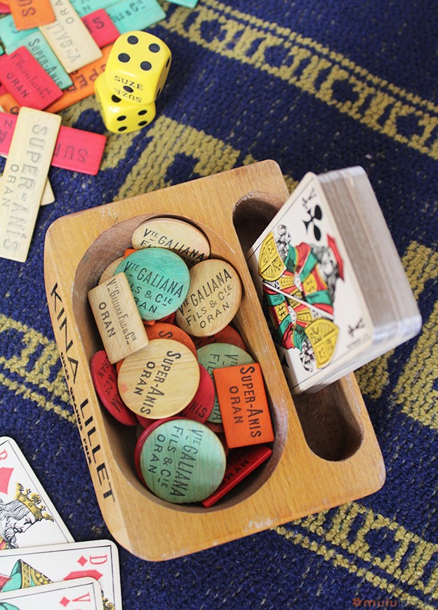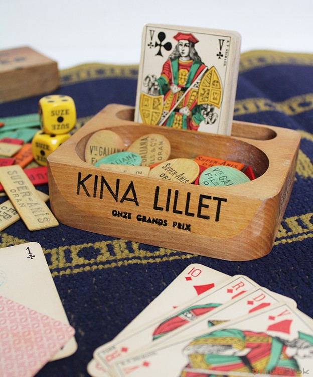 Objet publicitaire ancien sabot porte-cartes à jouer et jetons Kina Lillet.
