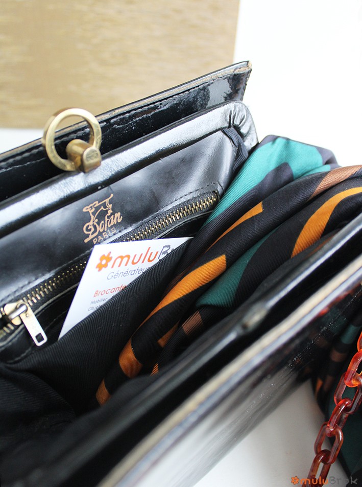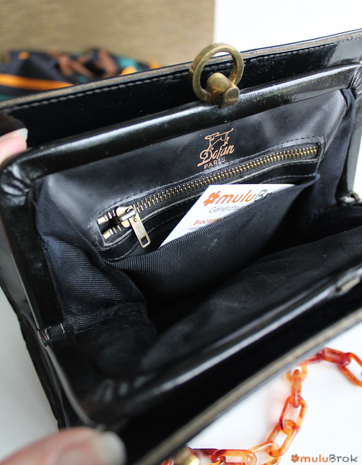 A l’intérieur : un compartiment avec 2 pochettes dont 1 zippée.