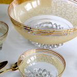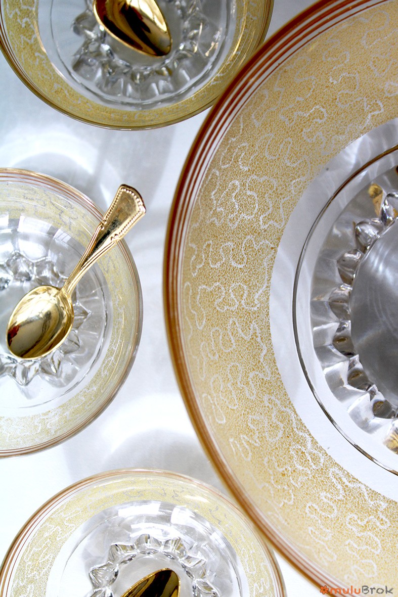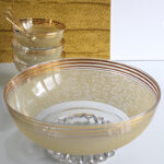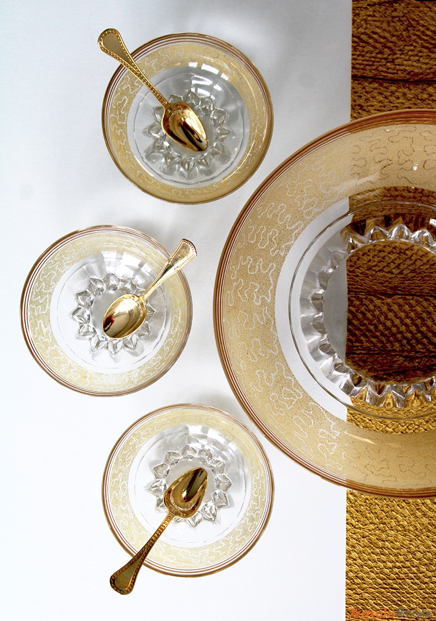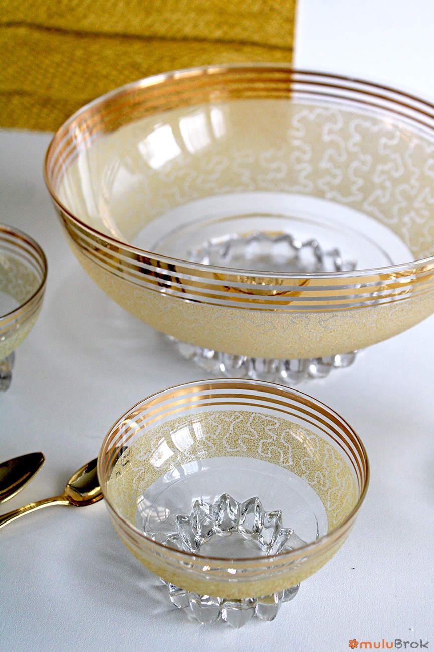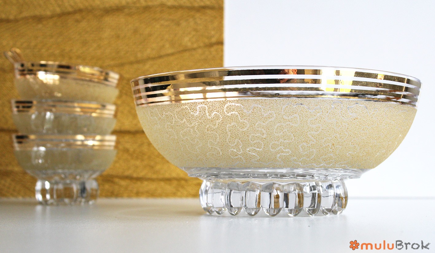 Vaisselle ancienne saladier et coupelles aux jolis pieds.