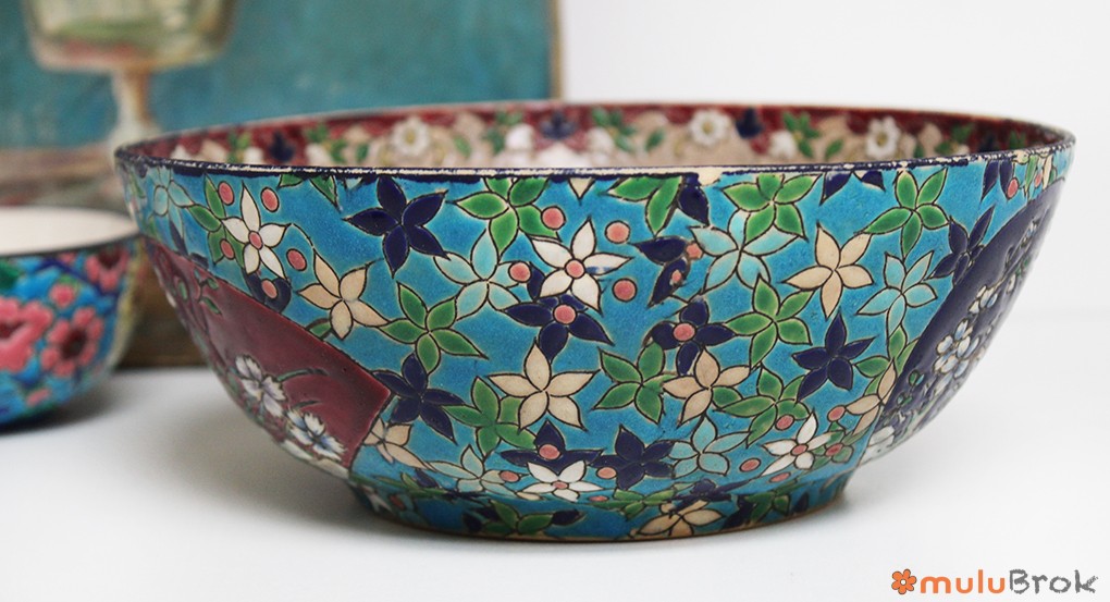 Faïence à décor de fleurs sur fond turquoise,