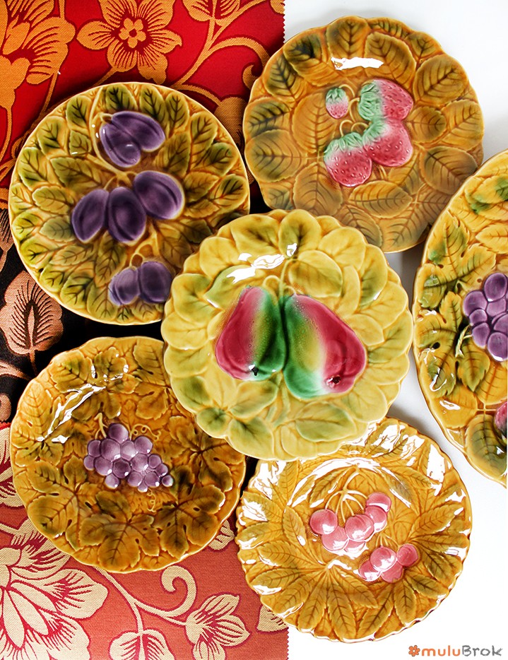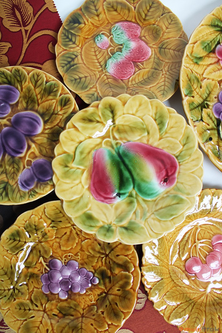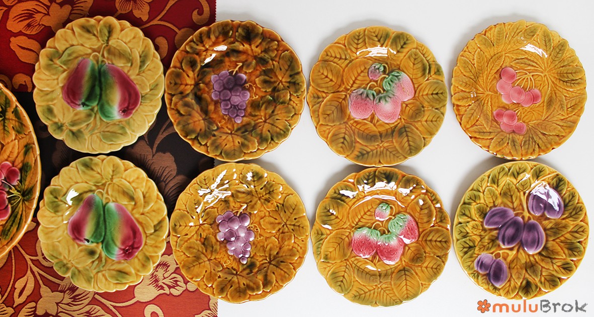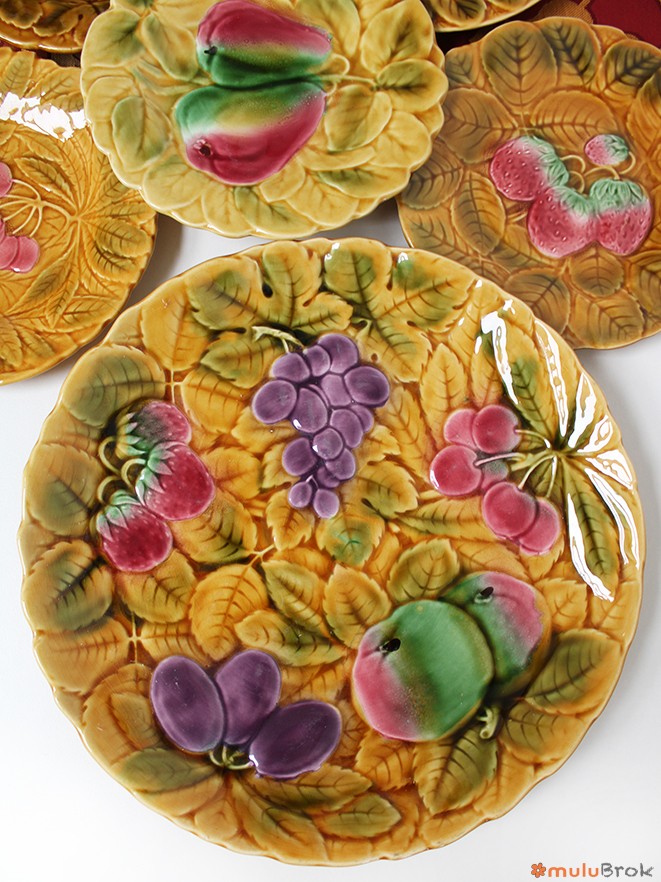 Décor : Fruits en relief, barbotine : Poire, Prune, Raisin, Fraise, cerise…