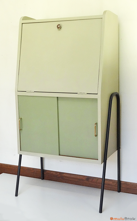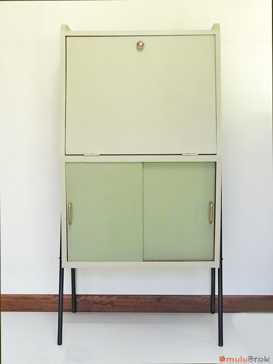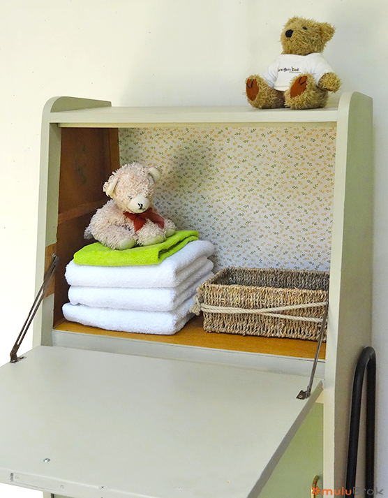 Rénové et revisité, ce meuble est peint en Chanvre et Vert de gris (peinture Libéron).