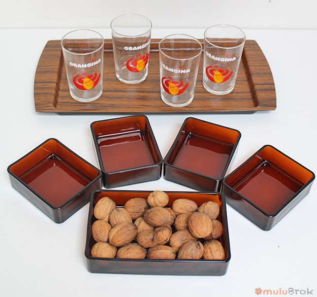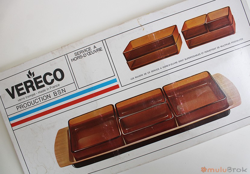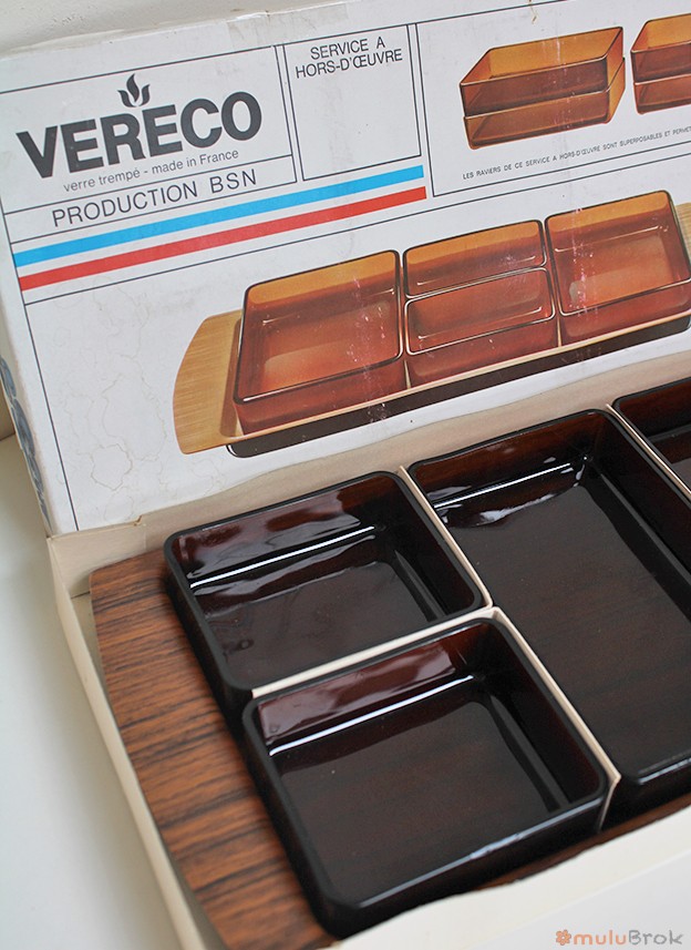 Vaisselle vintage, le service à hors d’oeuvre Vereco, des années 60.