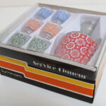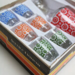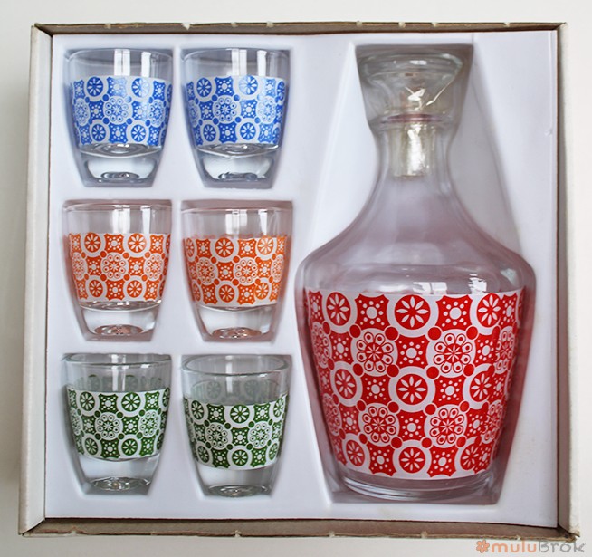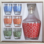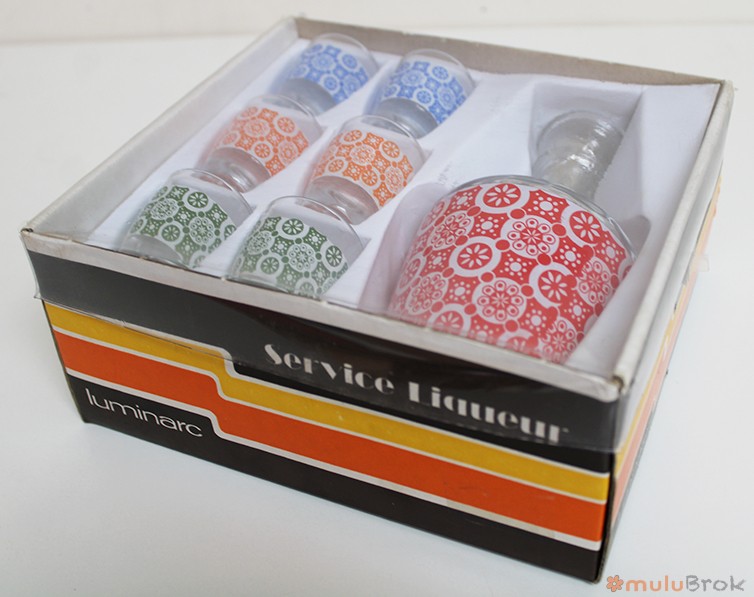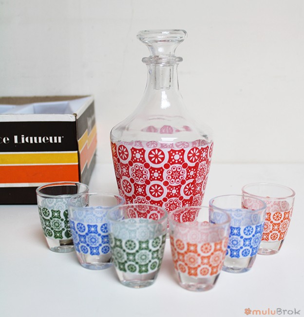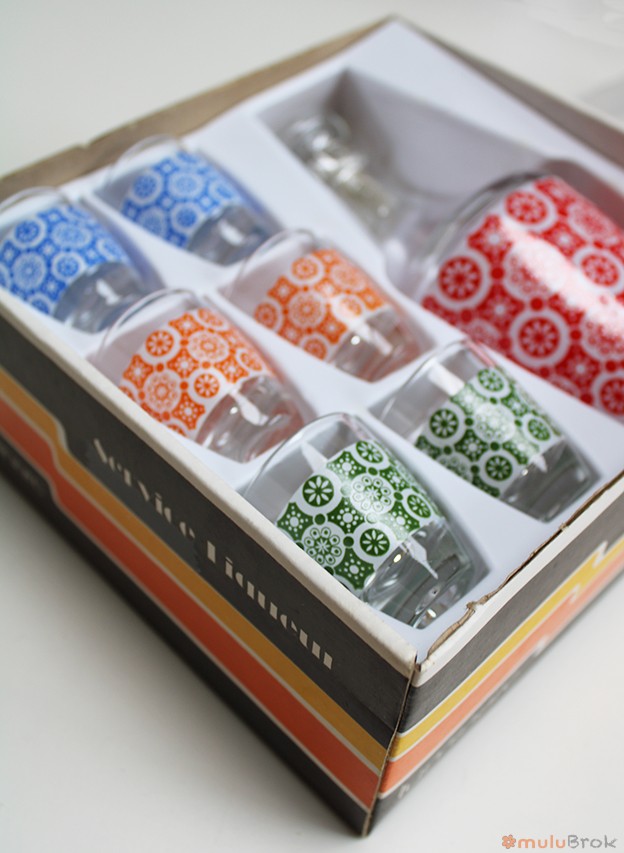 6 verres : hauteur : 5,5 cm (2 oranges, 2 verts, 2 bleus).
