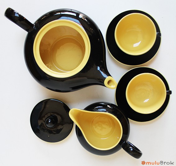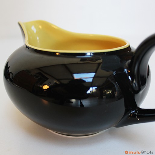 Faïence aux jolies courbes au coloris noir, intérieur jaune.