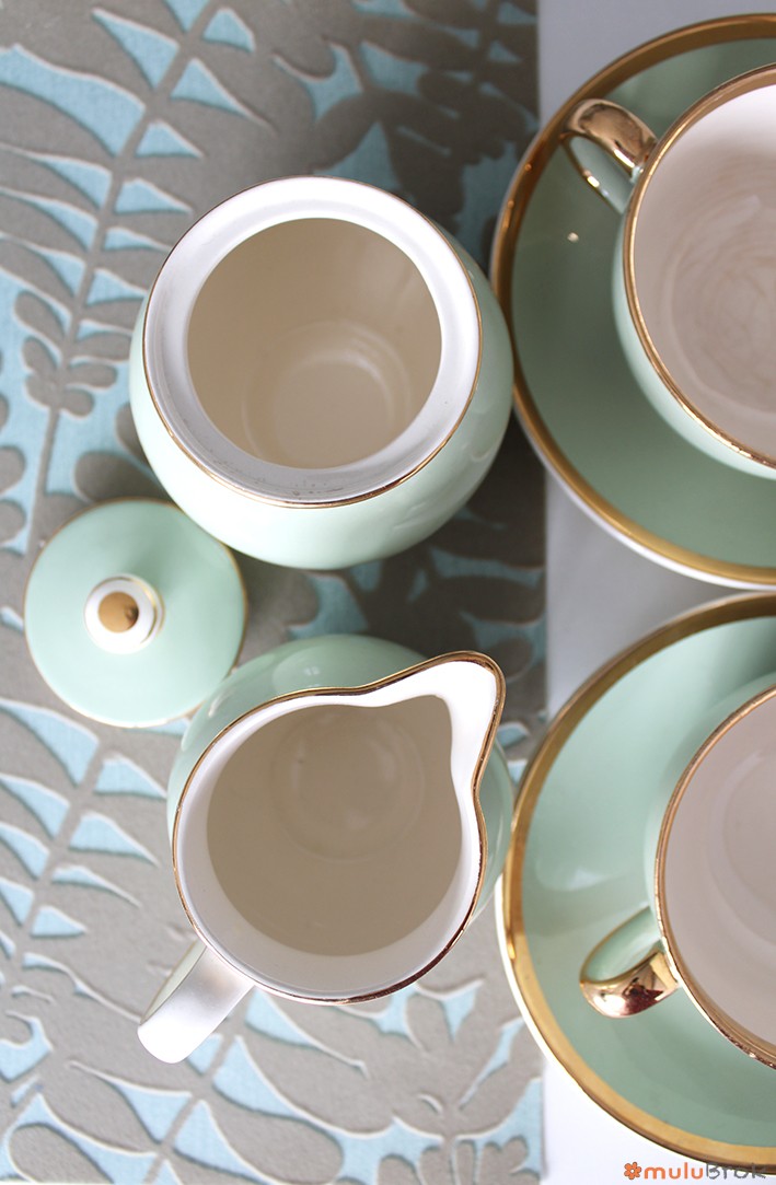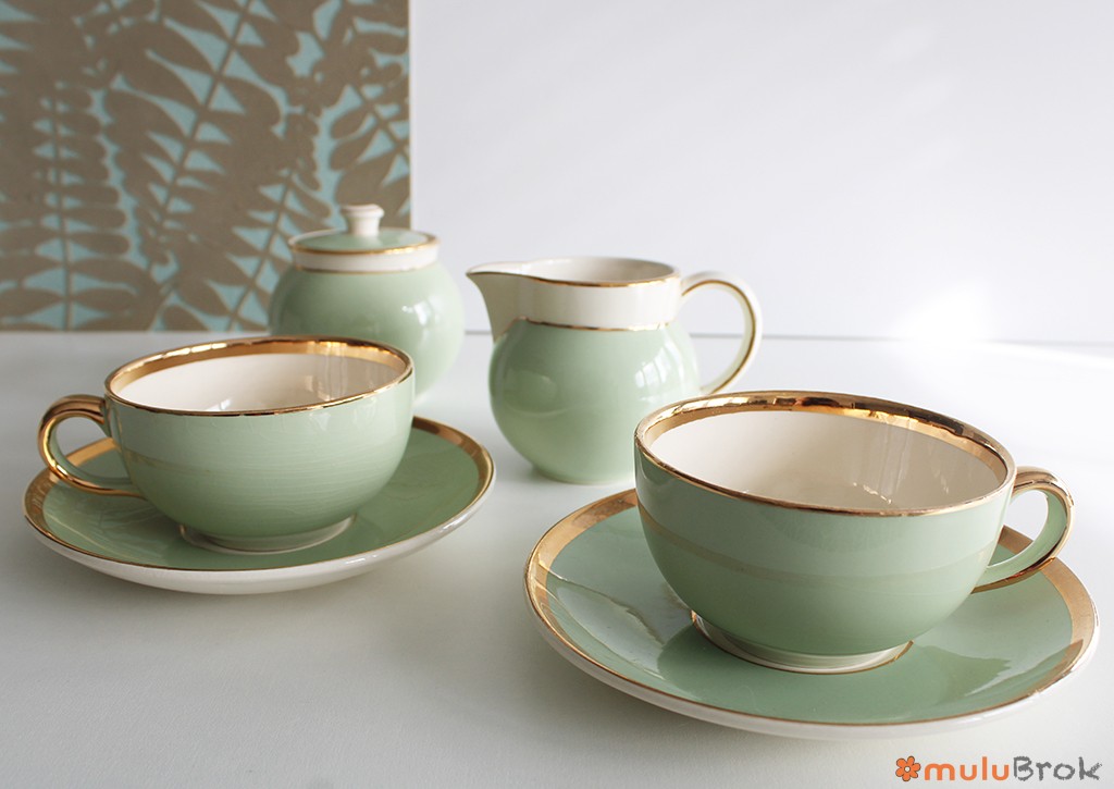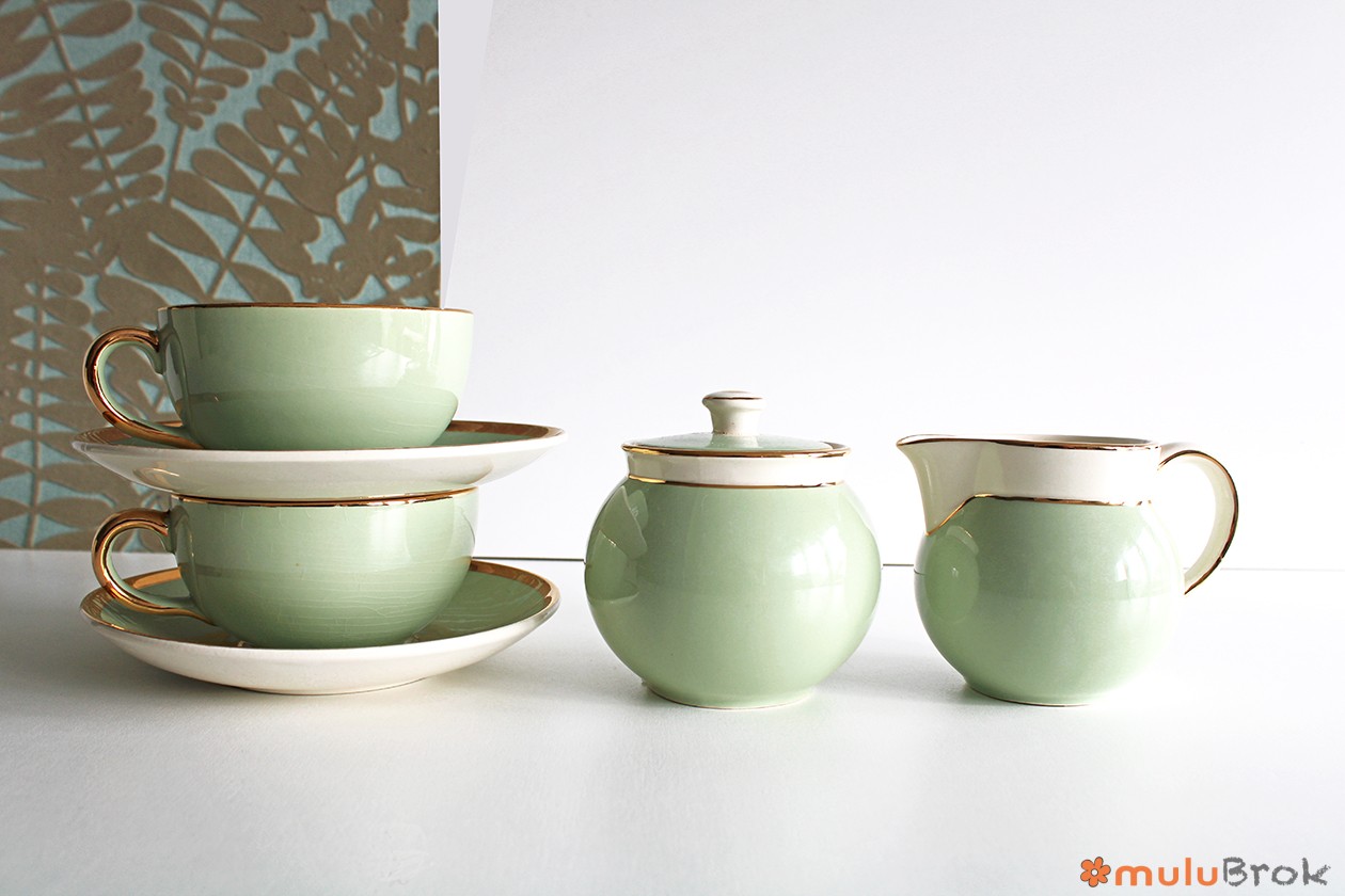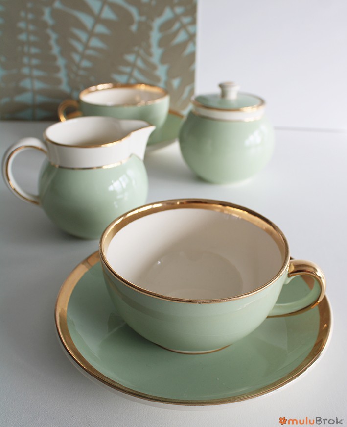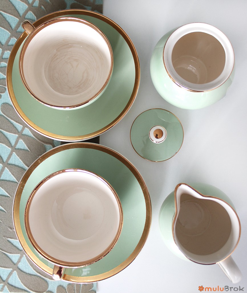 Service en très bon état (seul, l’intérieur d’une tasse est taché).