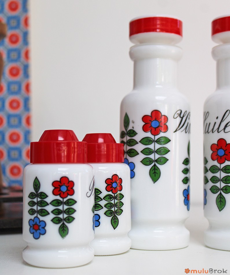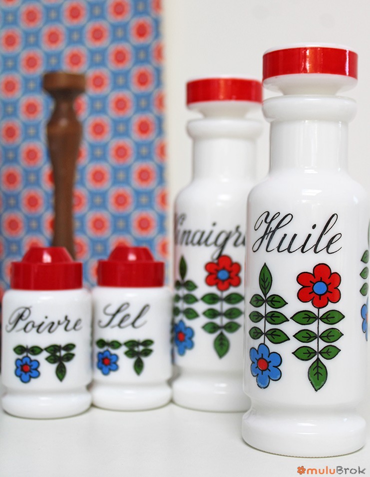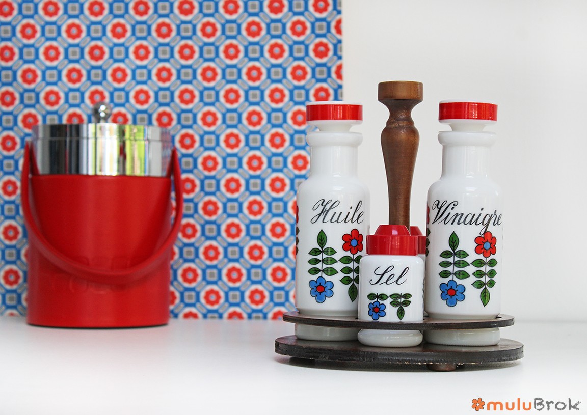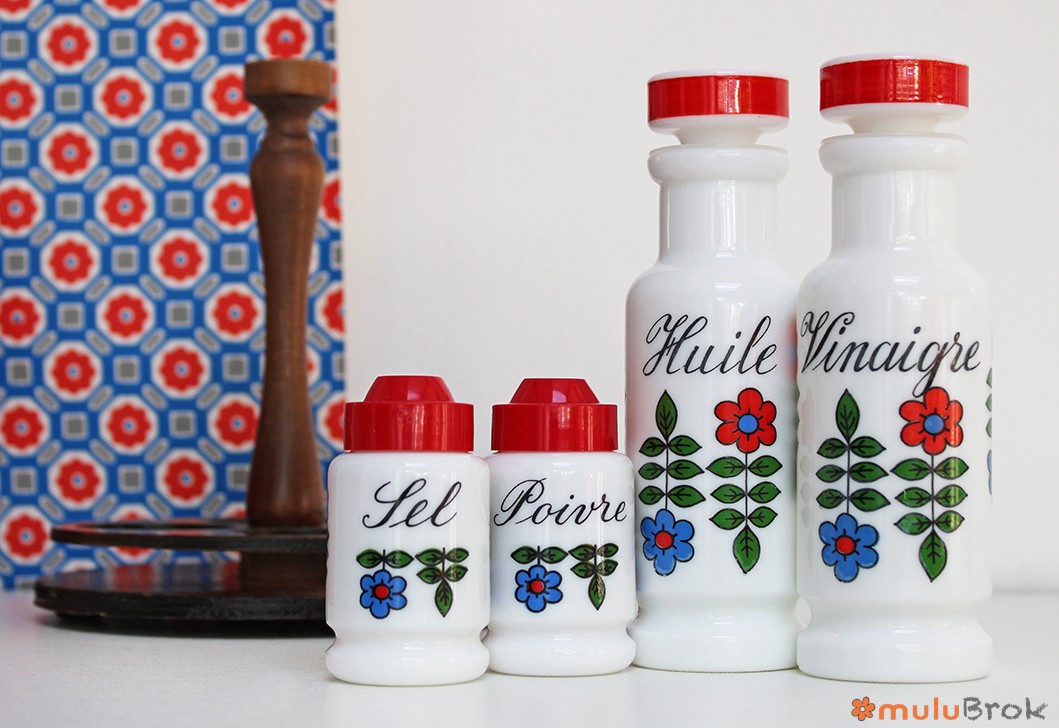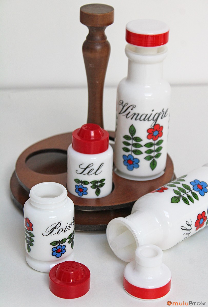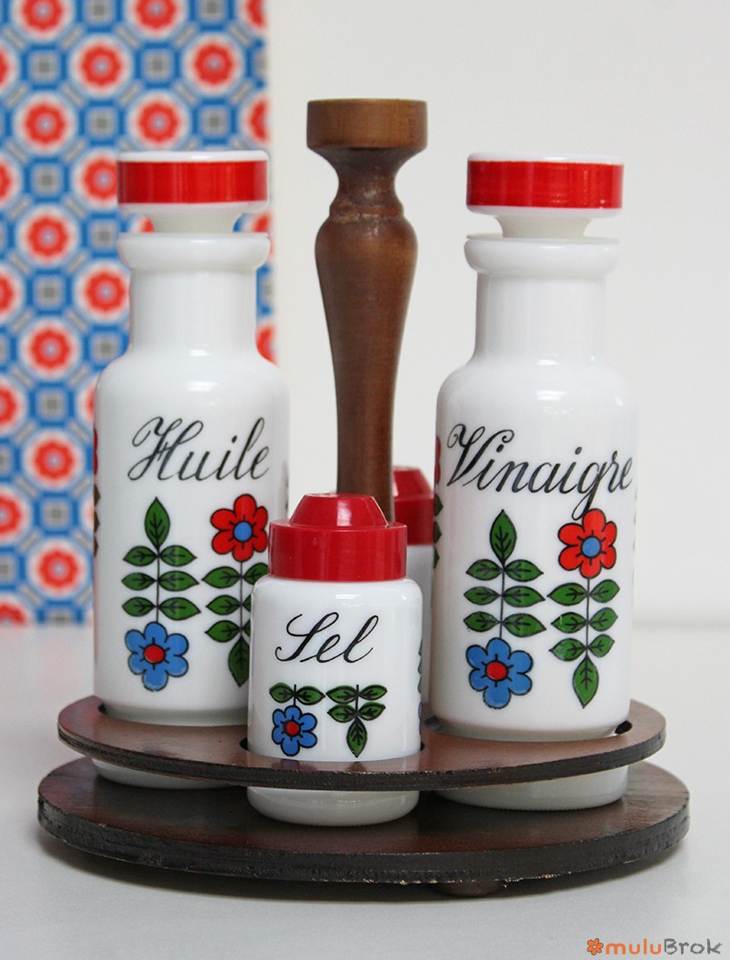 Serviteur à condiments Huile Vinaigre Sel Poivre vintage