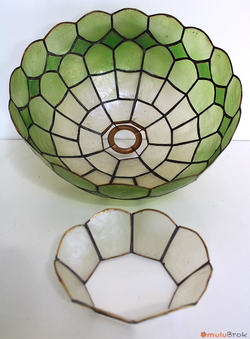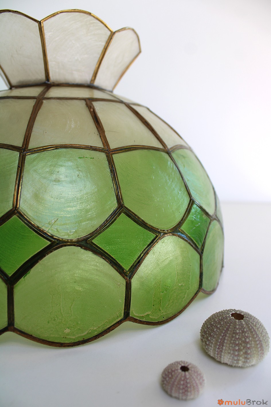 Suspension abat jour vintage en nacre de Capiz et laiton.