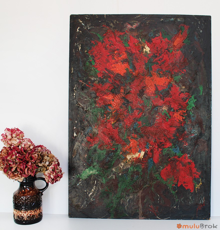 Tableau signé Pierre Piget Le bouquet rougeoyant
