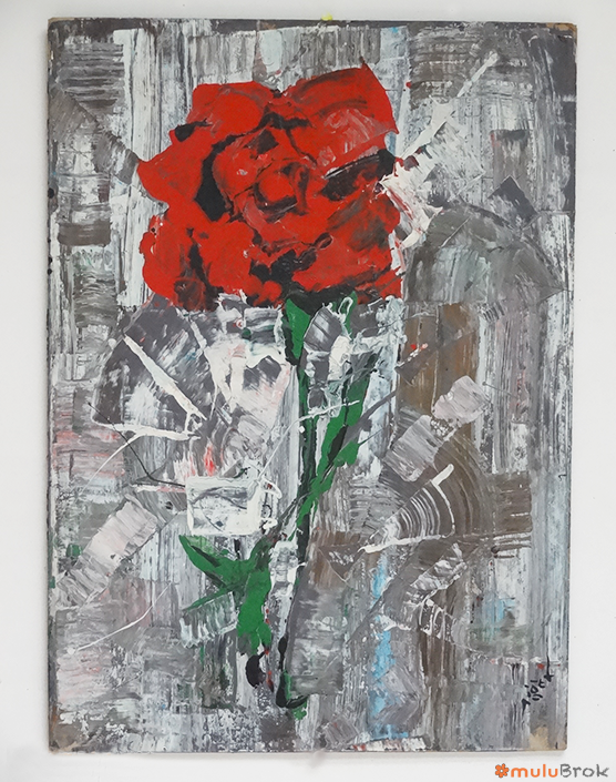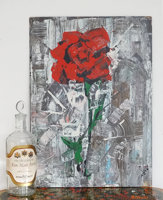 Tableau signé Pierre Piget La rose rouge