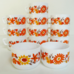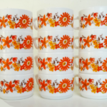 Motif : Grandes fleurs oranges et jaunes Marguerite et Tournesol.