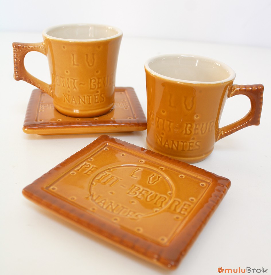 Tasses et sous tasses Petit Beurre Lu de Nantes.