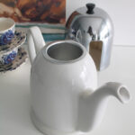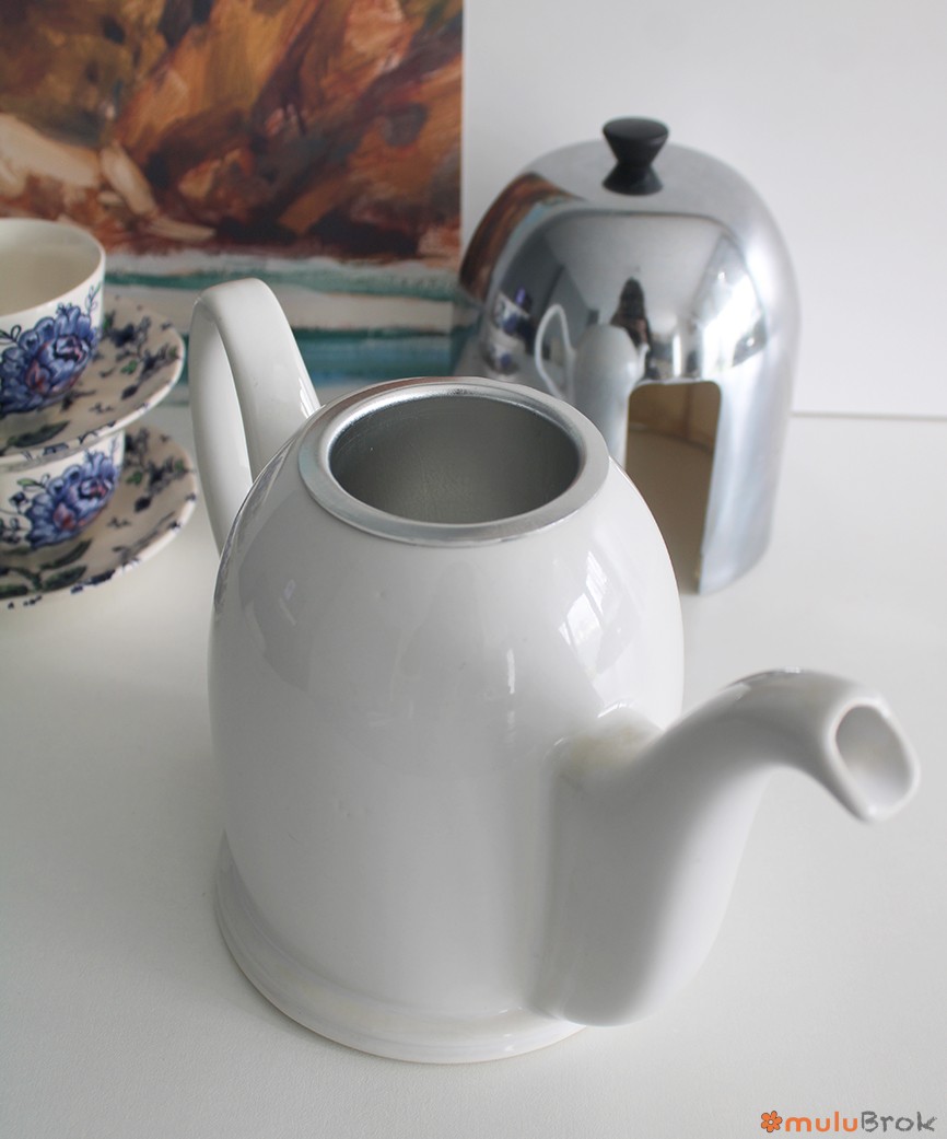 Théière en porcelaine et inox.