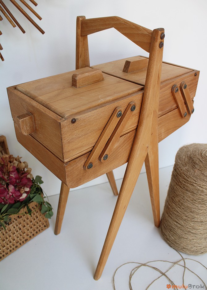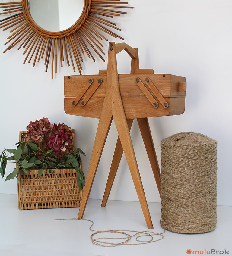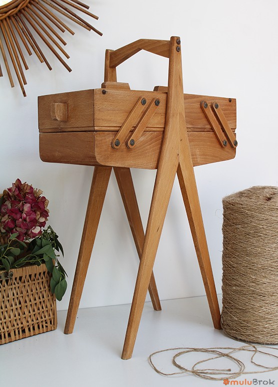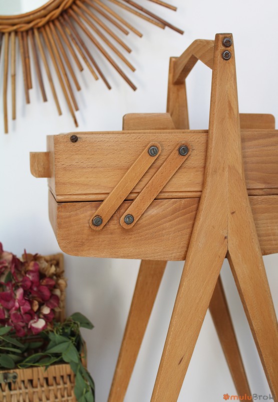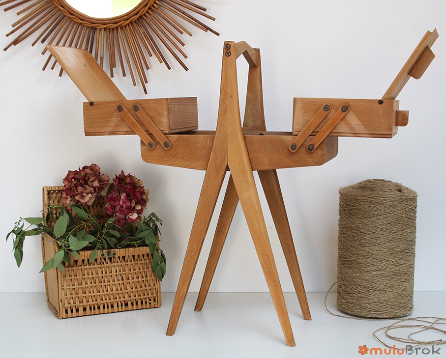 Meuble de couture, la travailleuse aux pieds compas.