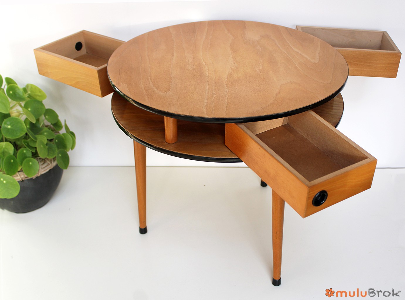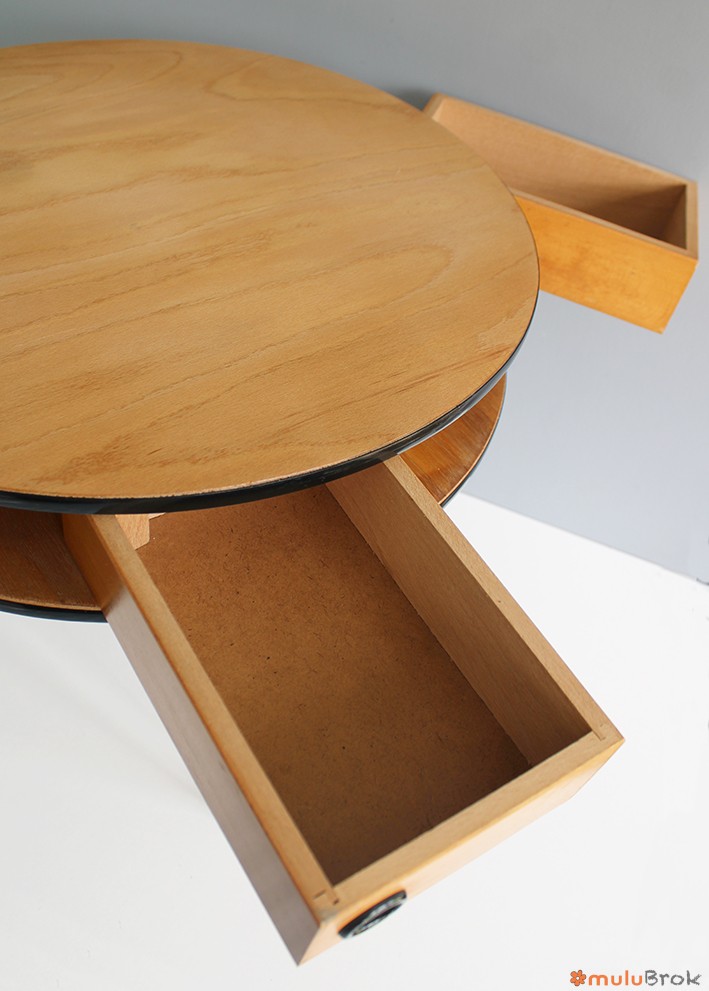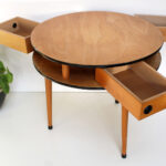 Travailleuse style scandinave à tiroirs pivotants.