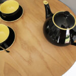 Rénovée, le plateau a été poncé, finition vernis mat.