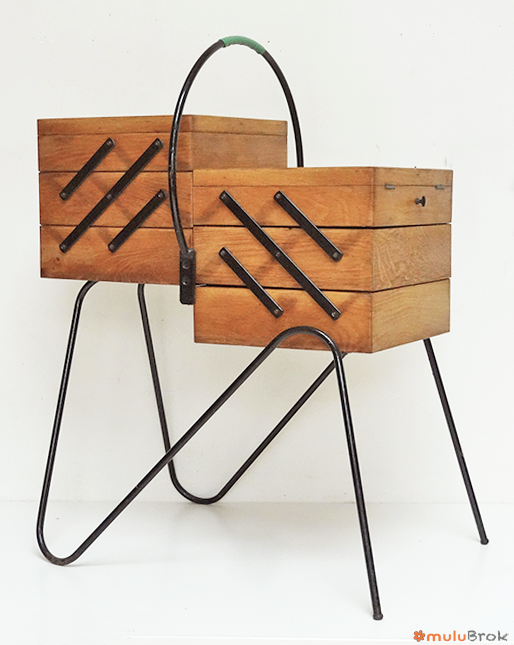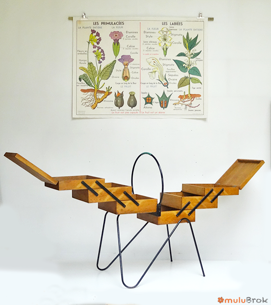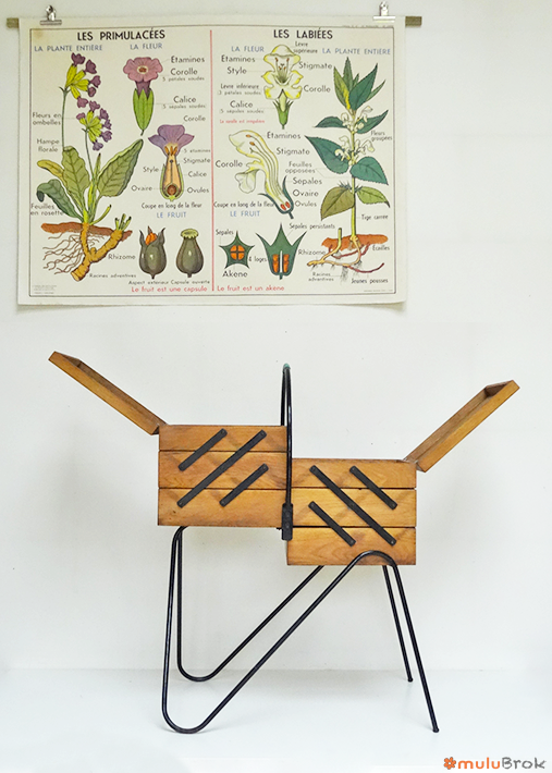 Ancien meuble de couture, la travailleuse grand modèle des années 50.