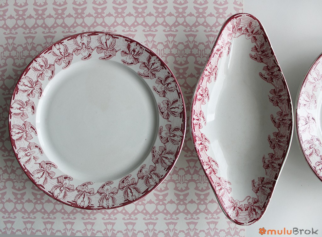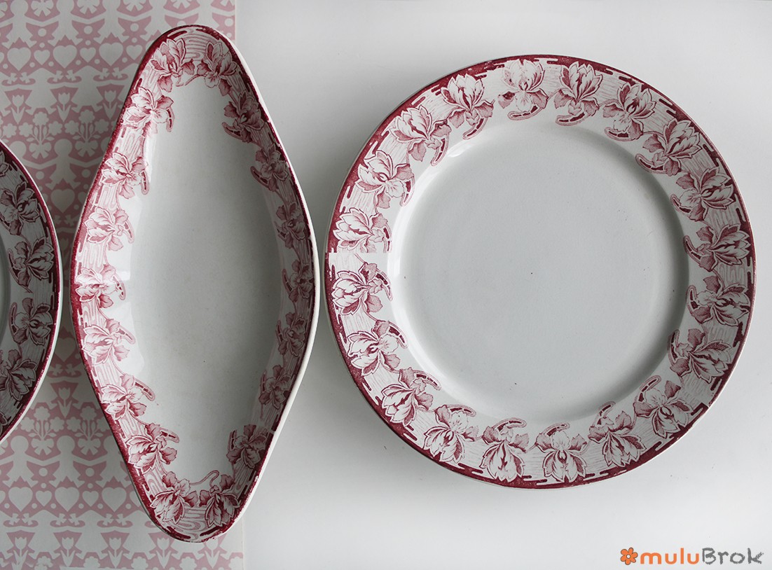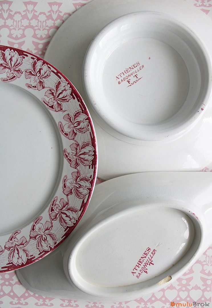 Vaisselle ancienne en faïence Badonviller modèle Athènes.