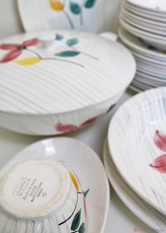 Vaisselle ancienne en faïence Digoin et Sarreguemines.