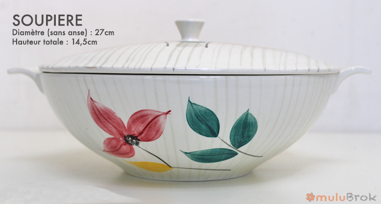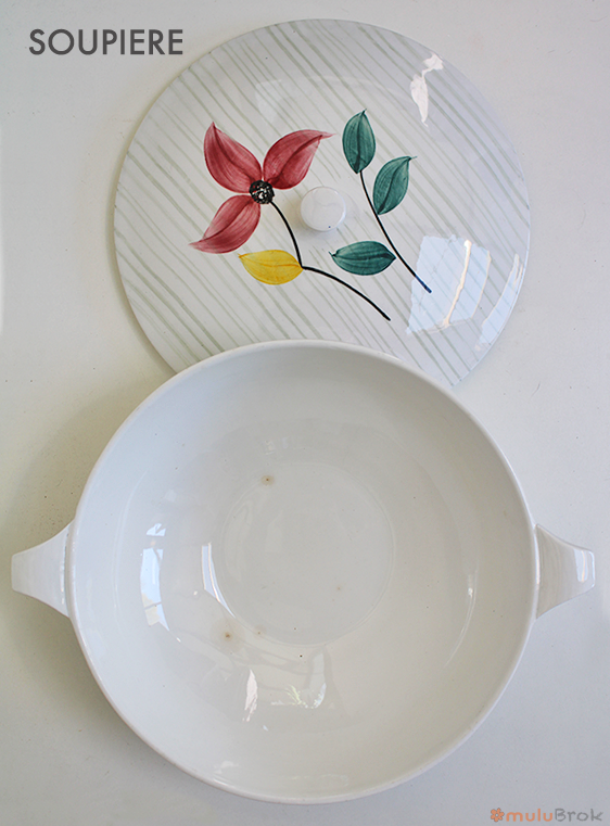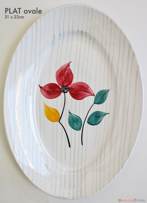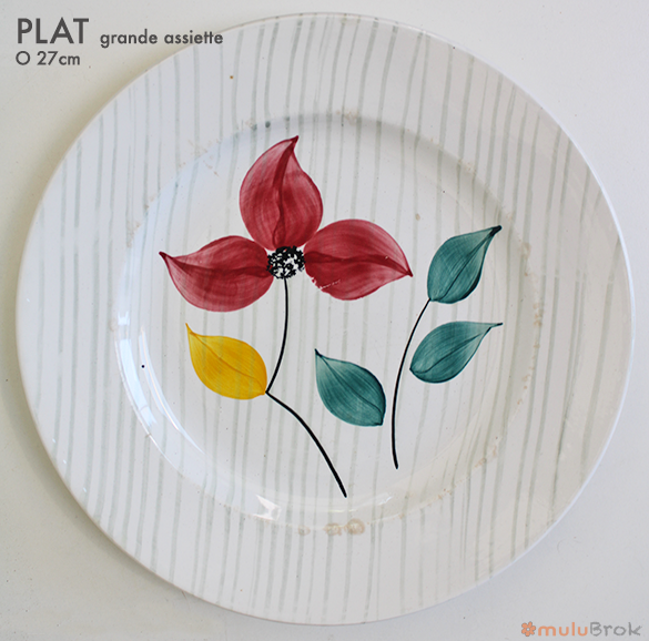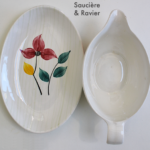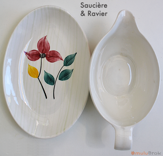 A NOTER : quelques tâches sur le plat 27cm et 1 petit éclat sur le bord de la saucière.