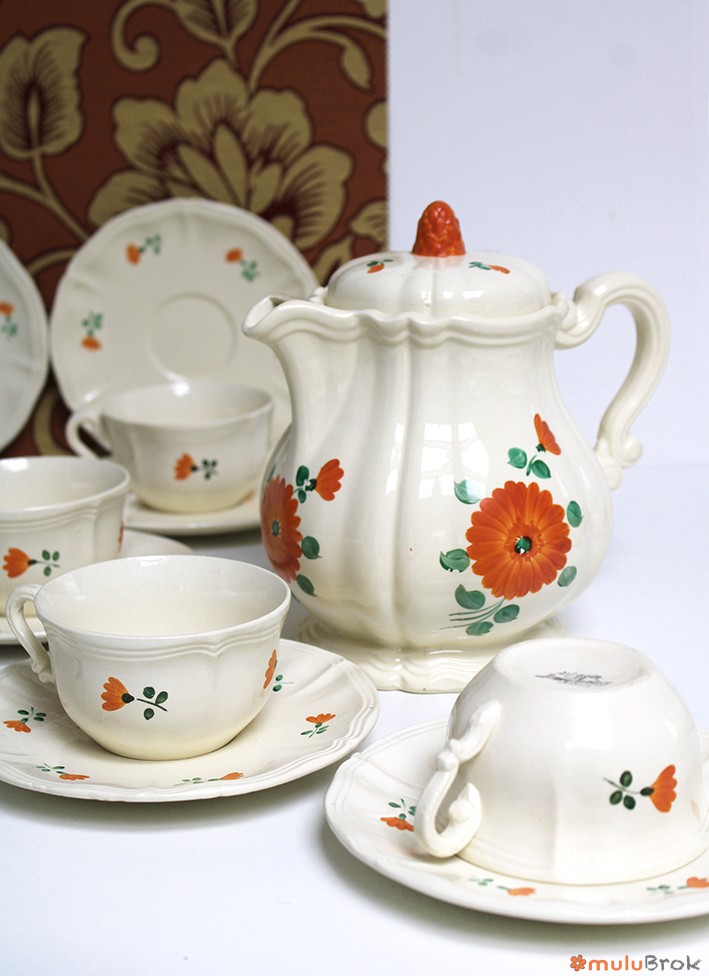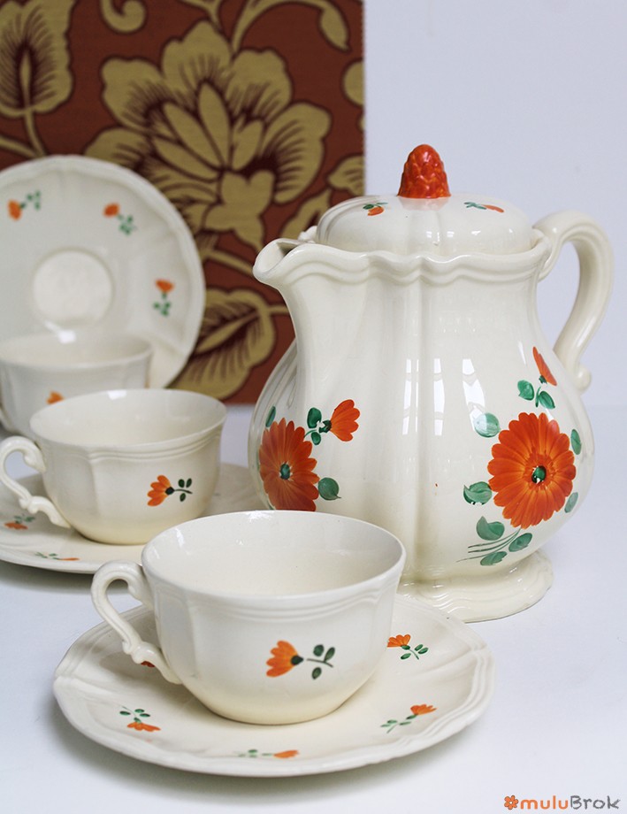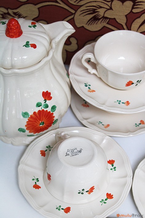 Vaisselle Digoin Sarreguemines Fleurs oranges