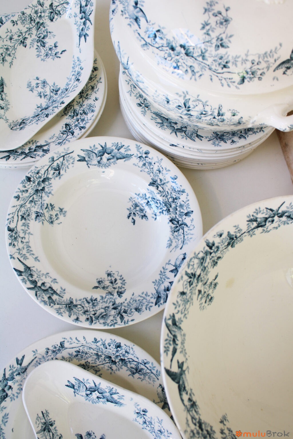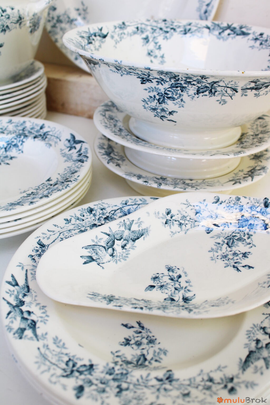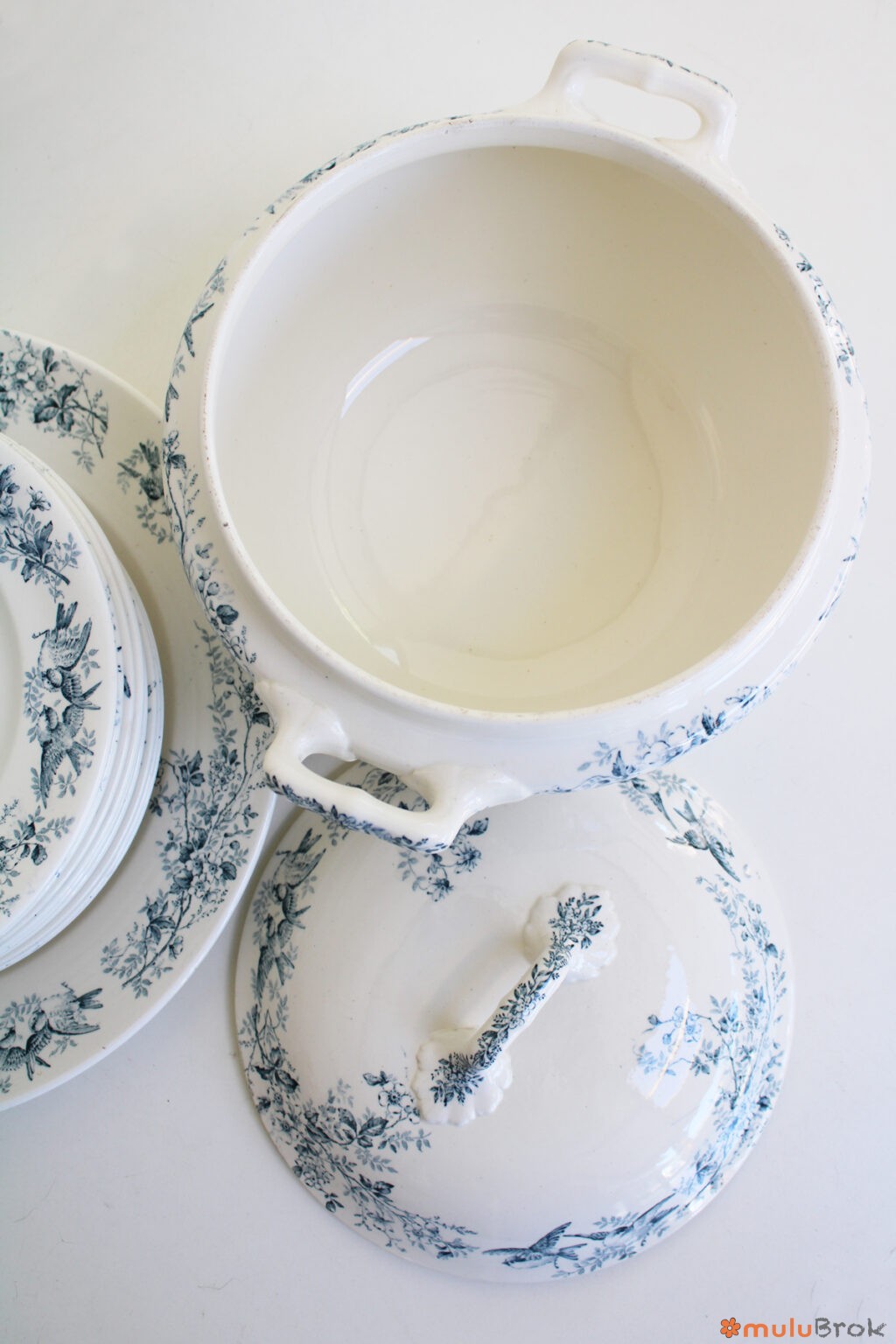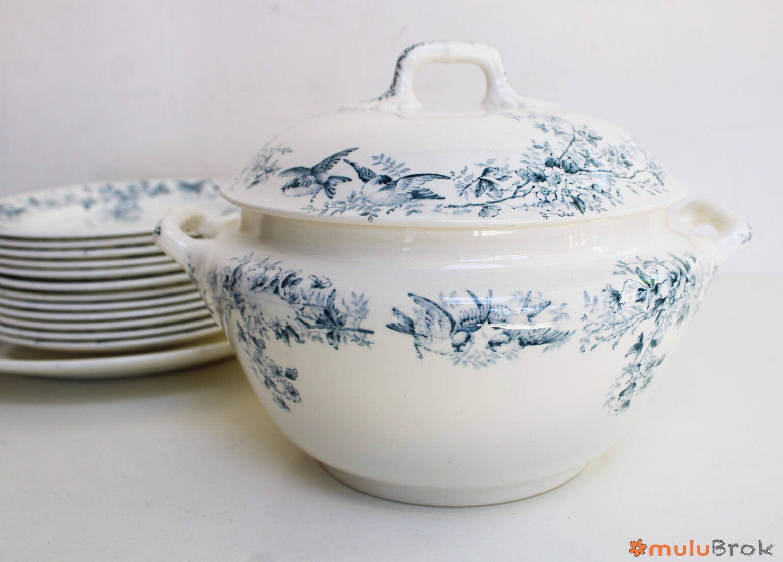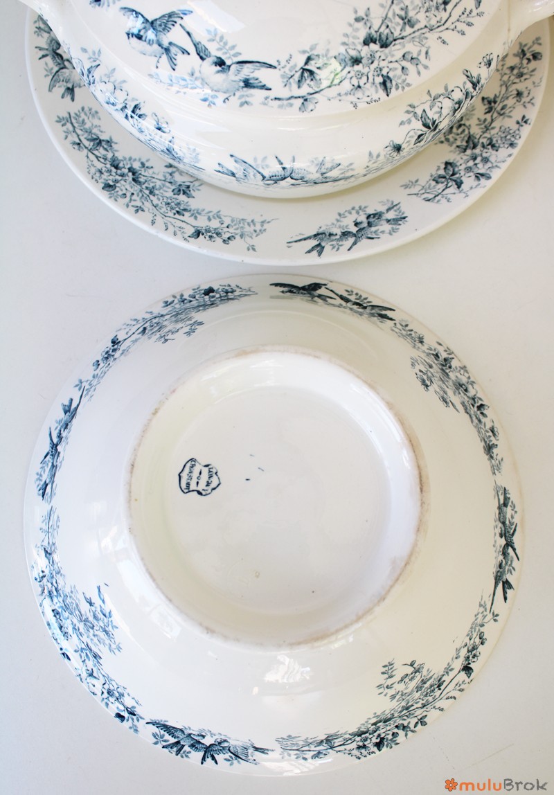 Vaisselle ancienne en faïence fin 19ème de la manufacture de Longwy.