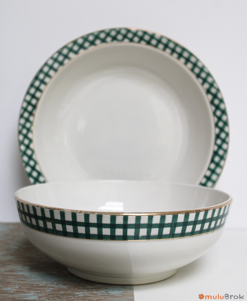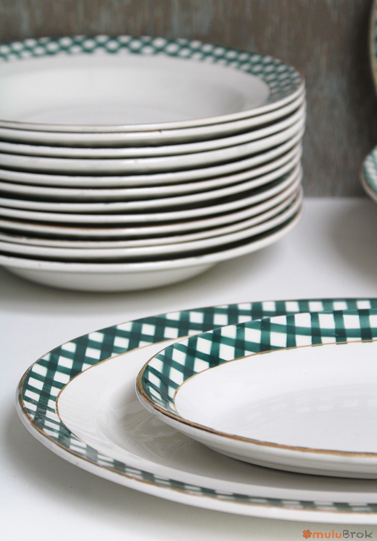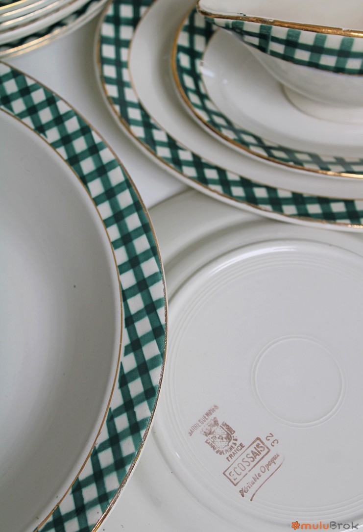 Vaisselle ancienne en faïence opaque modèle Ecossais.