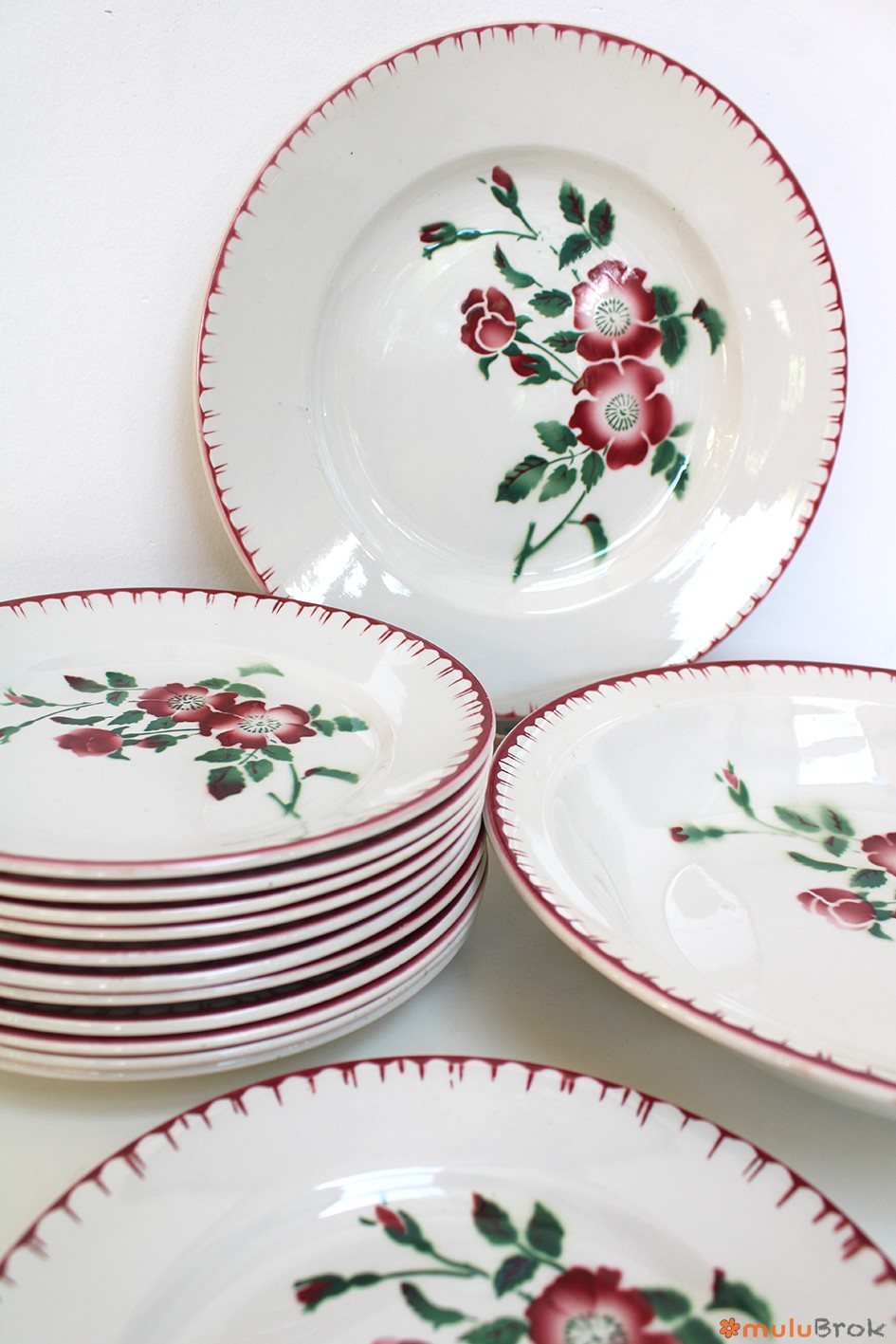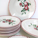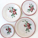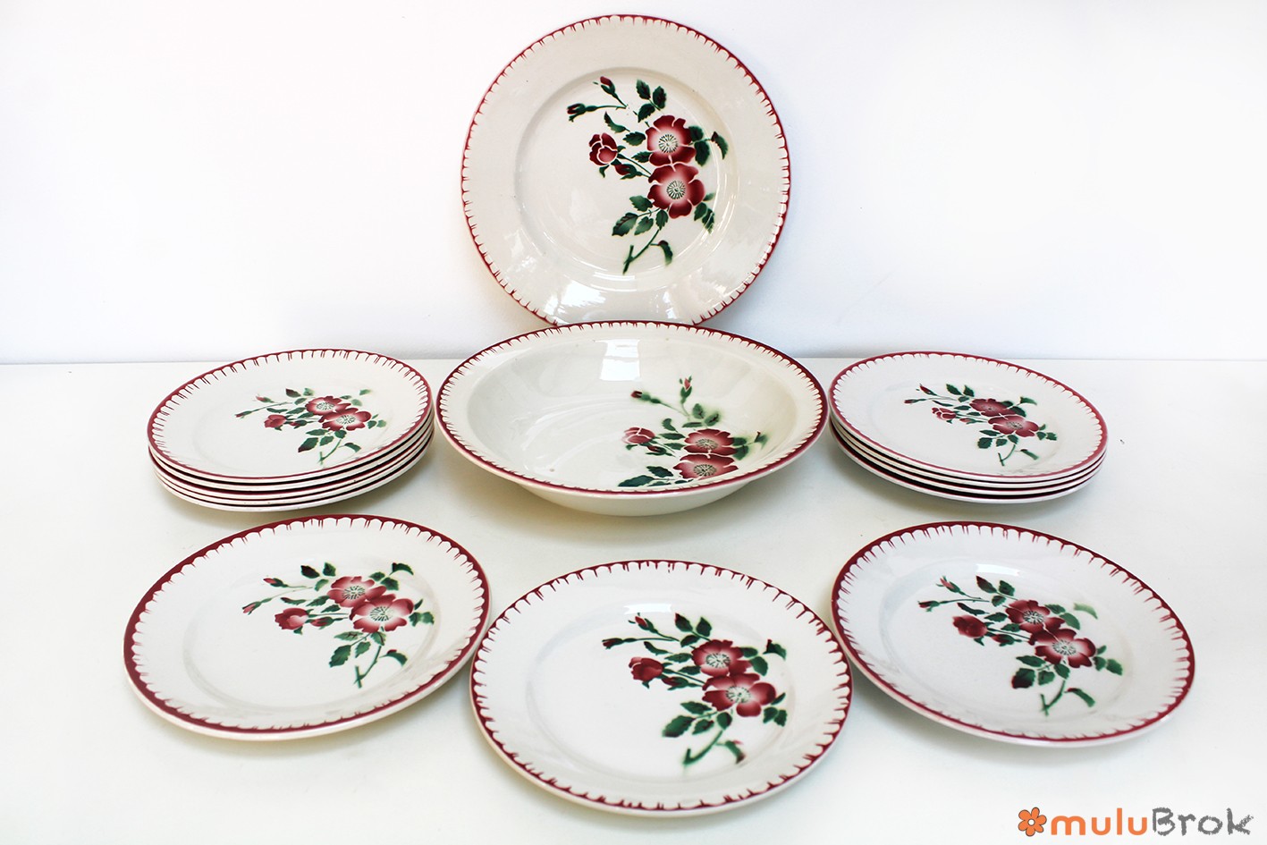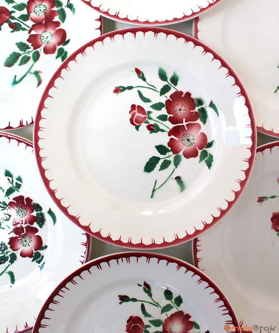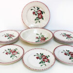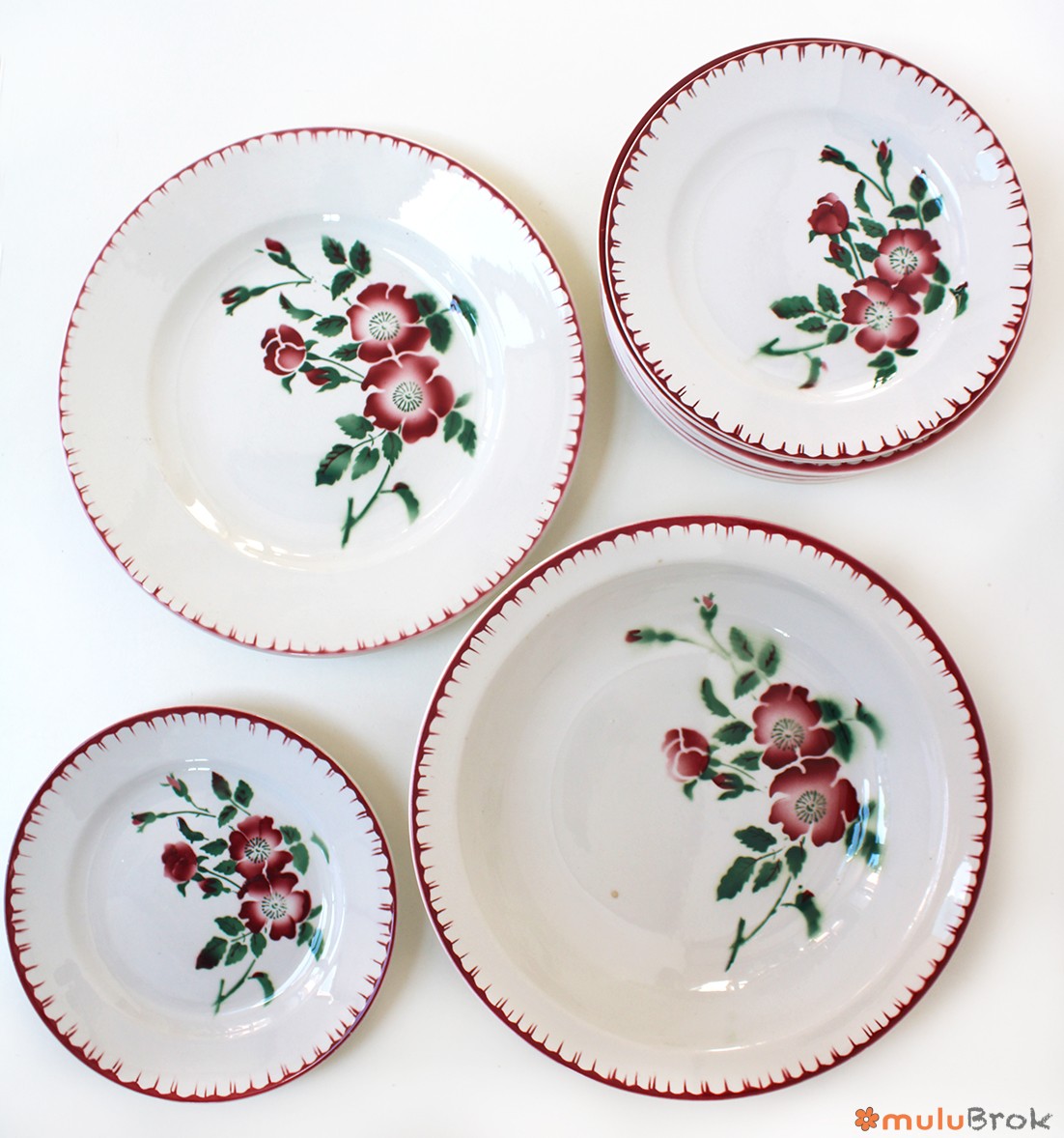 Ravissant décor de fleurs et feuillage et le contour sur chaque pièce.