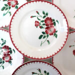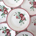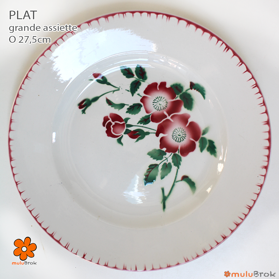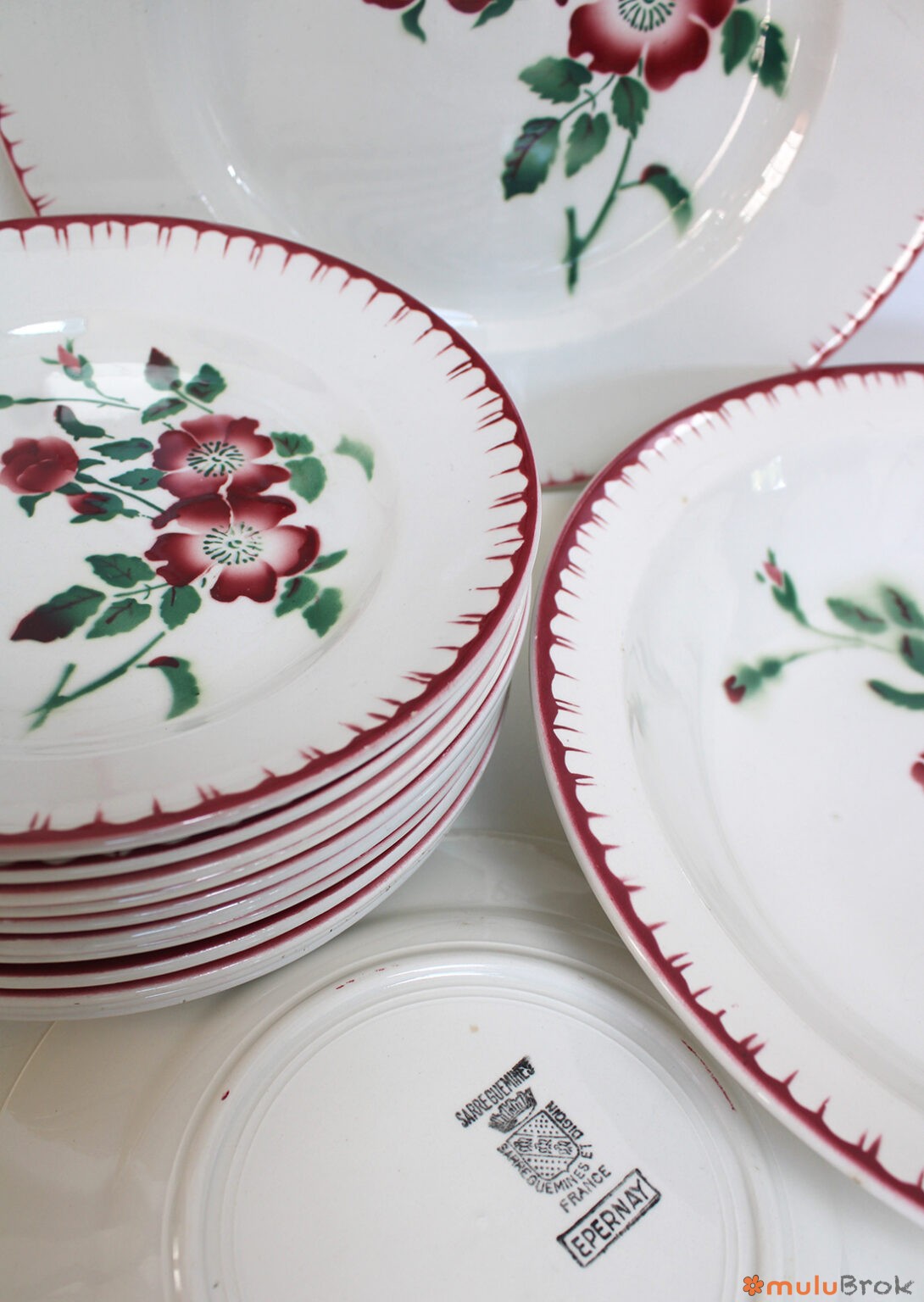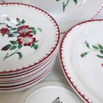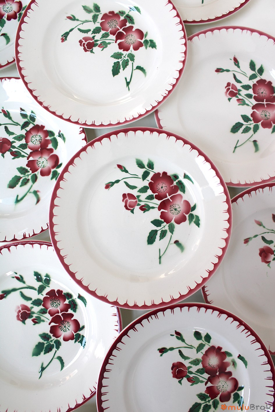 Ravissant décor de fleurs et feuillage et le contour sur chaque pièce.