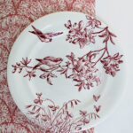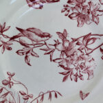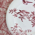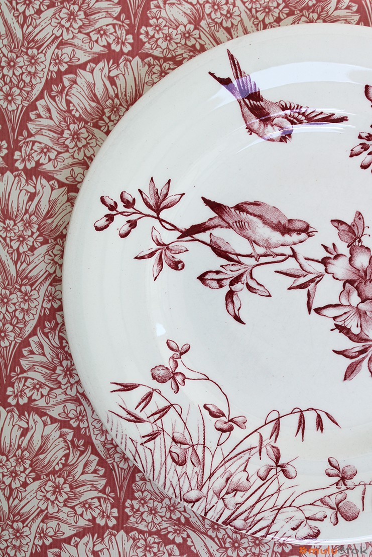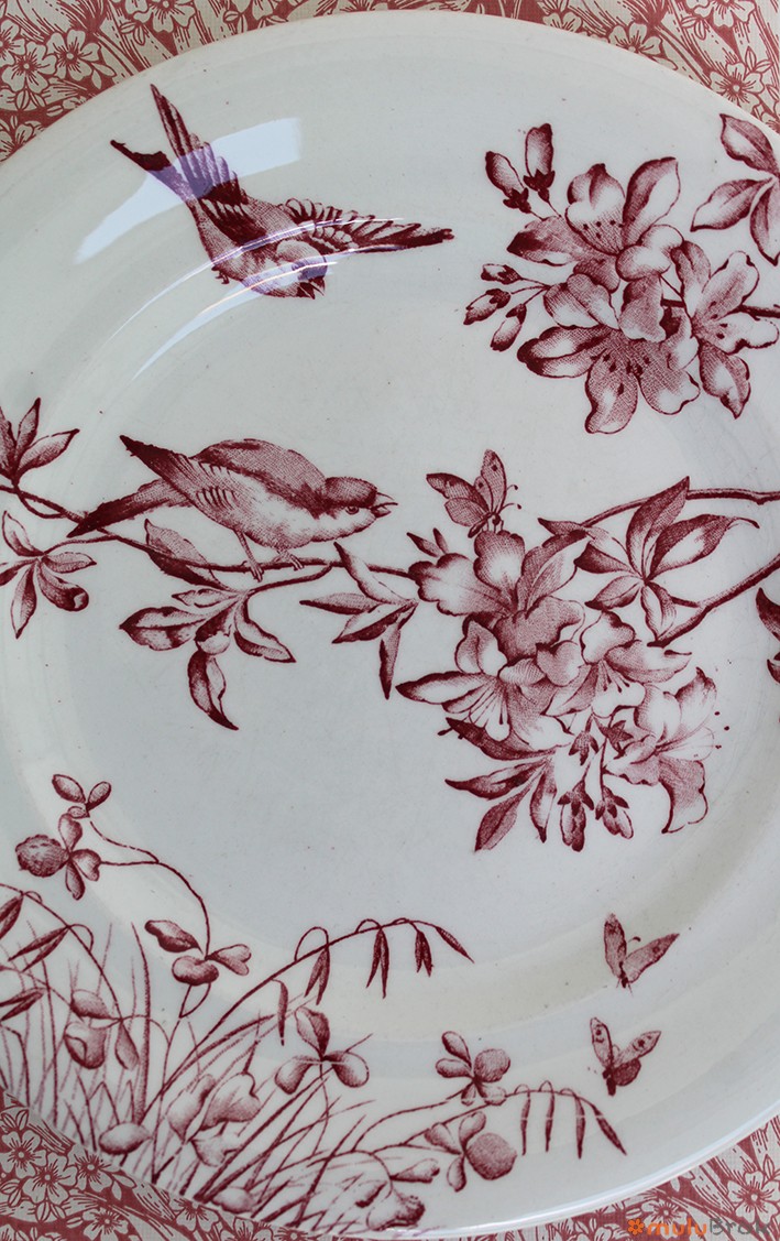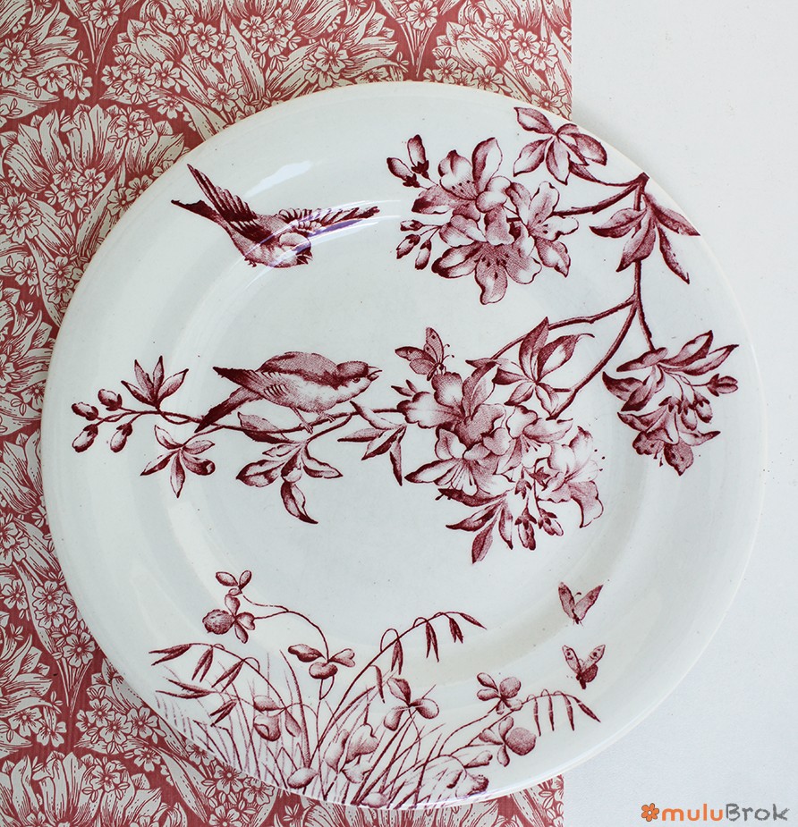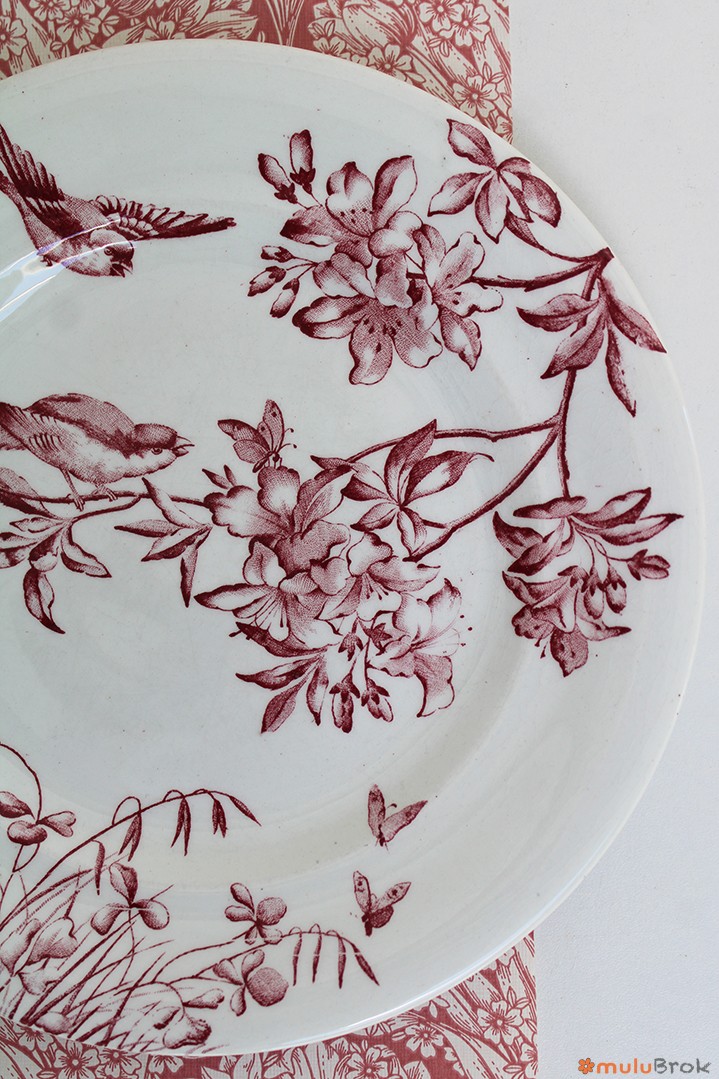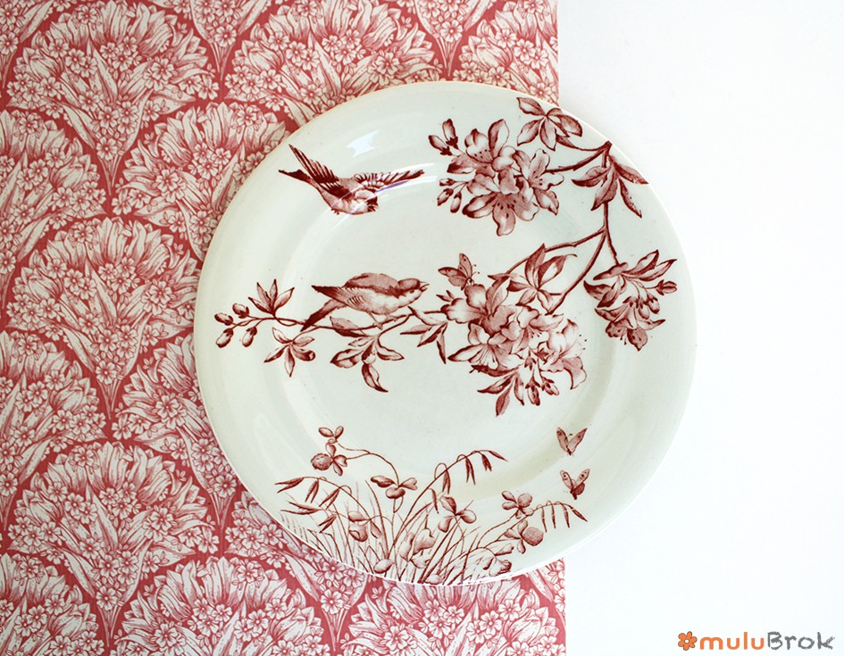 Joli motif composé d’oiseaux, de fleurs et feuilles, coloris rose.