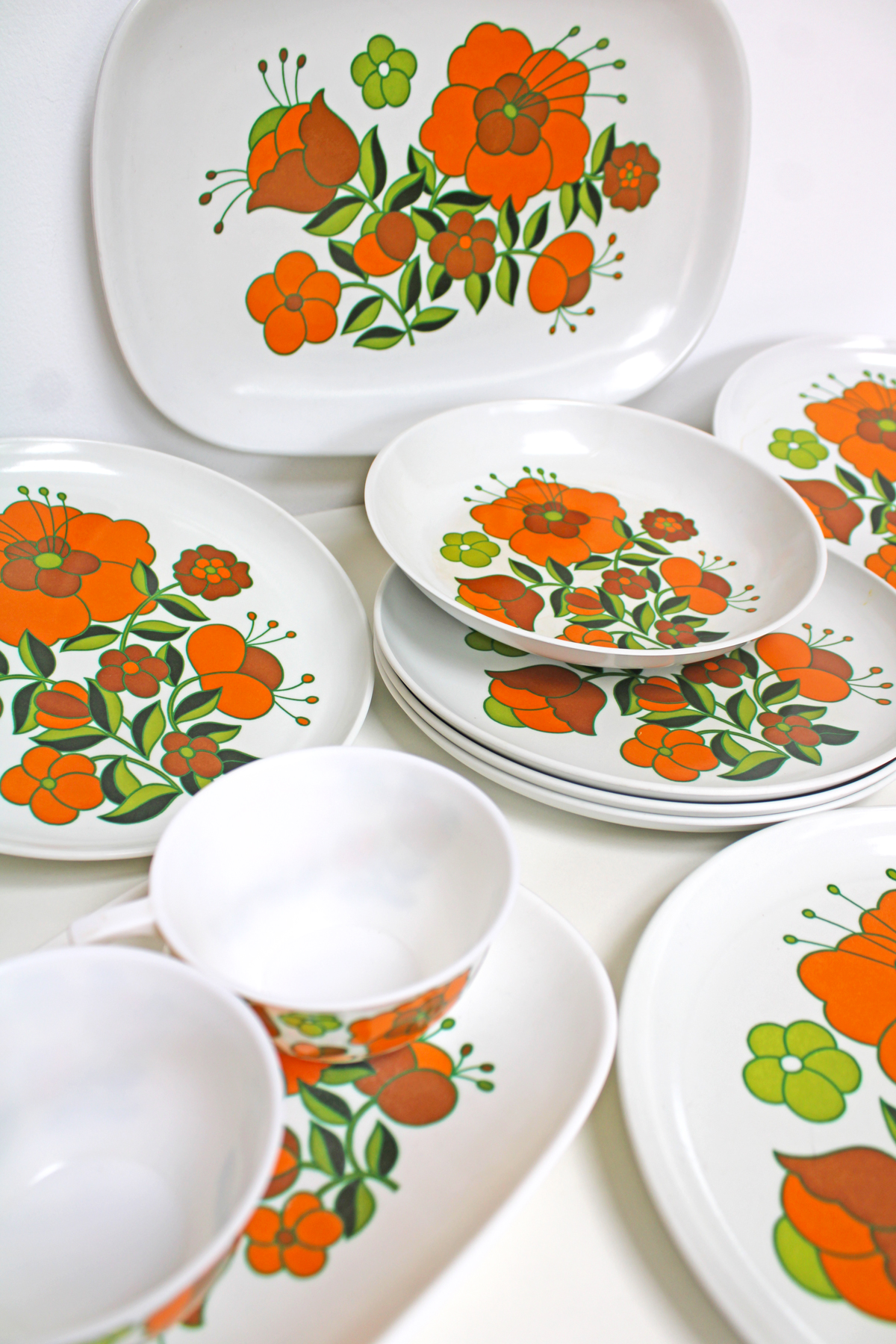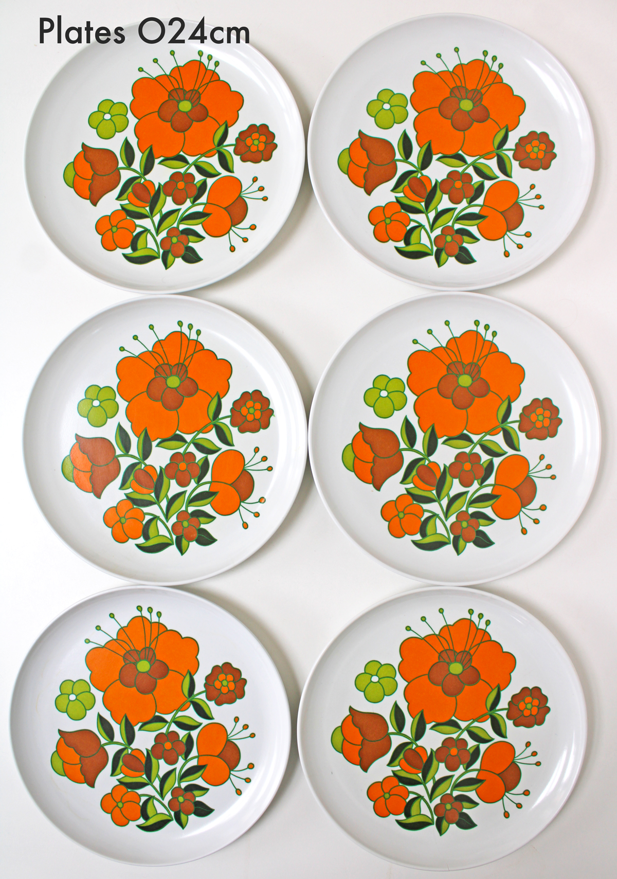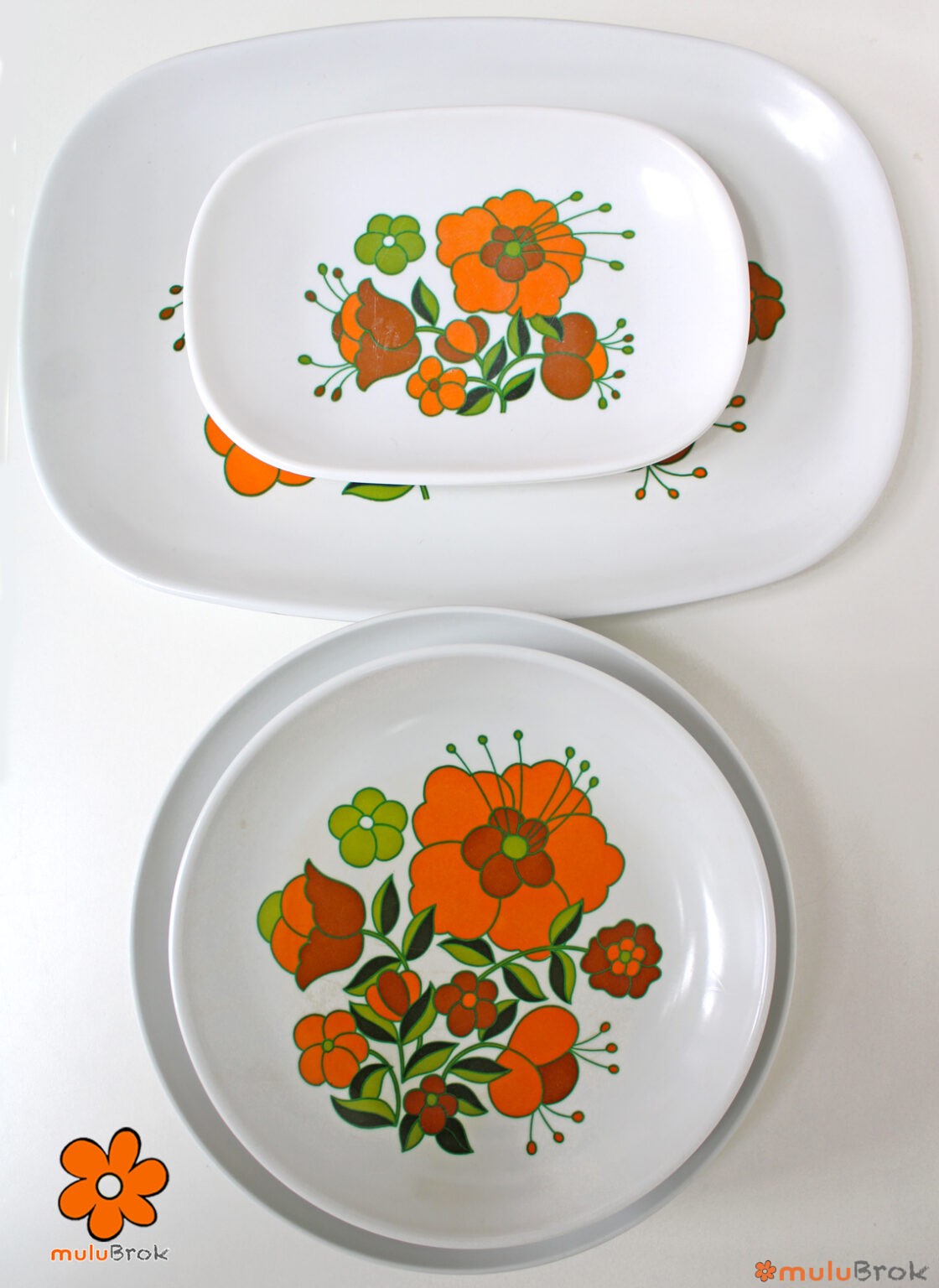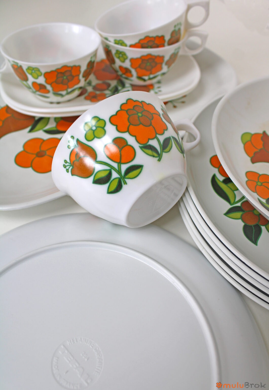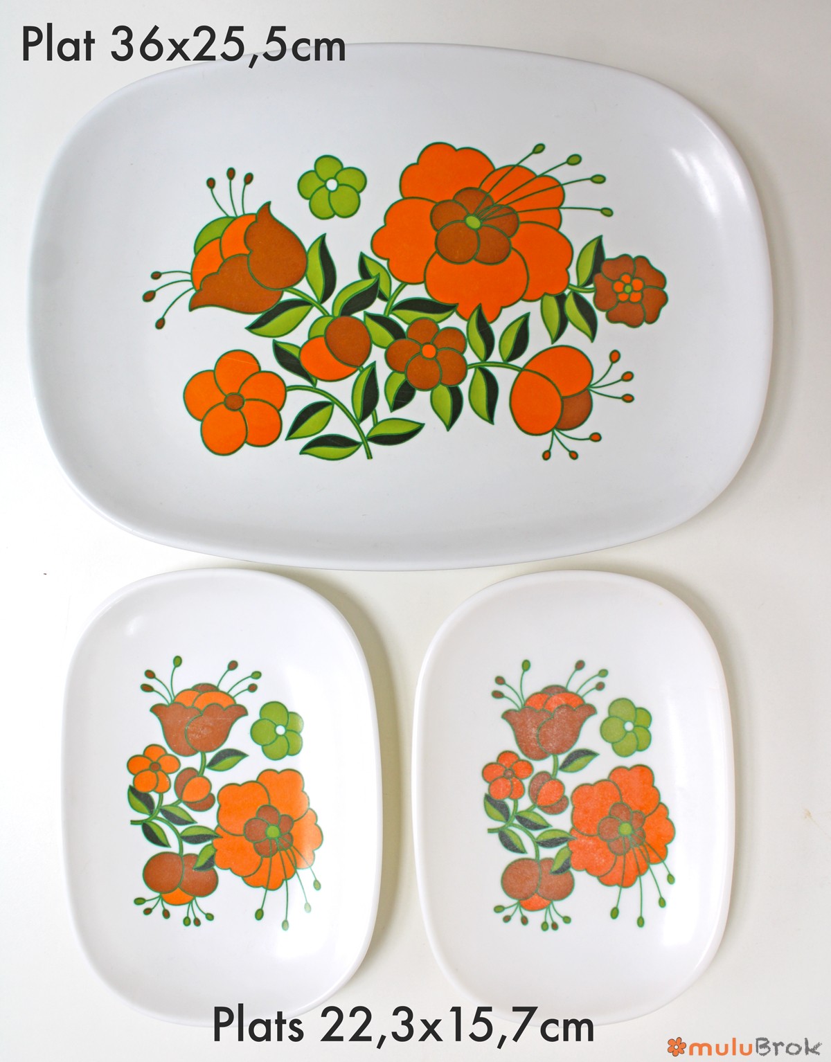 Mélaminé aux jolis motifs floraux, fleurs oranges.