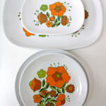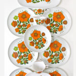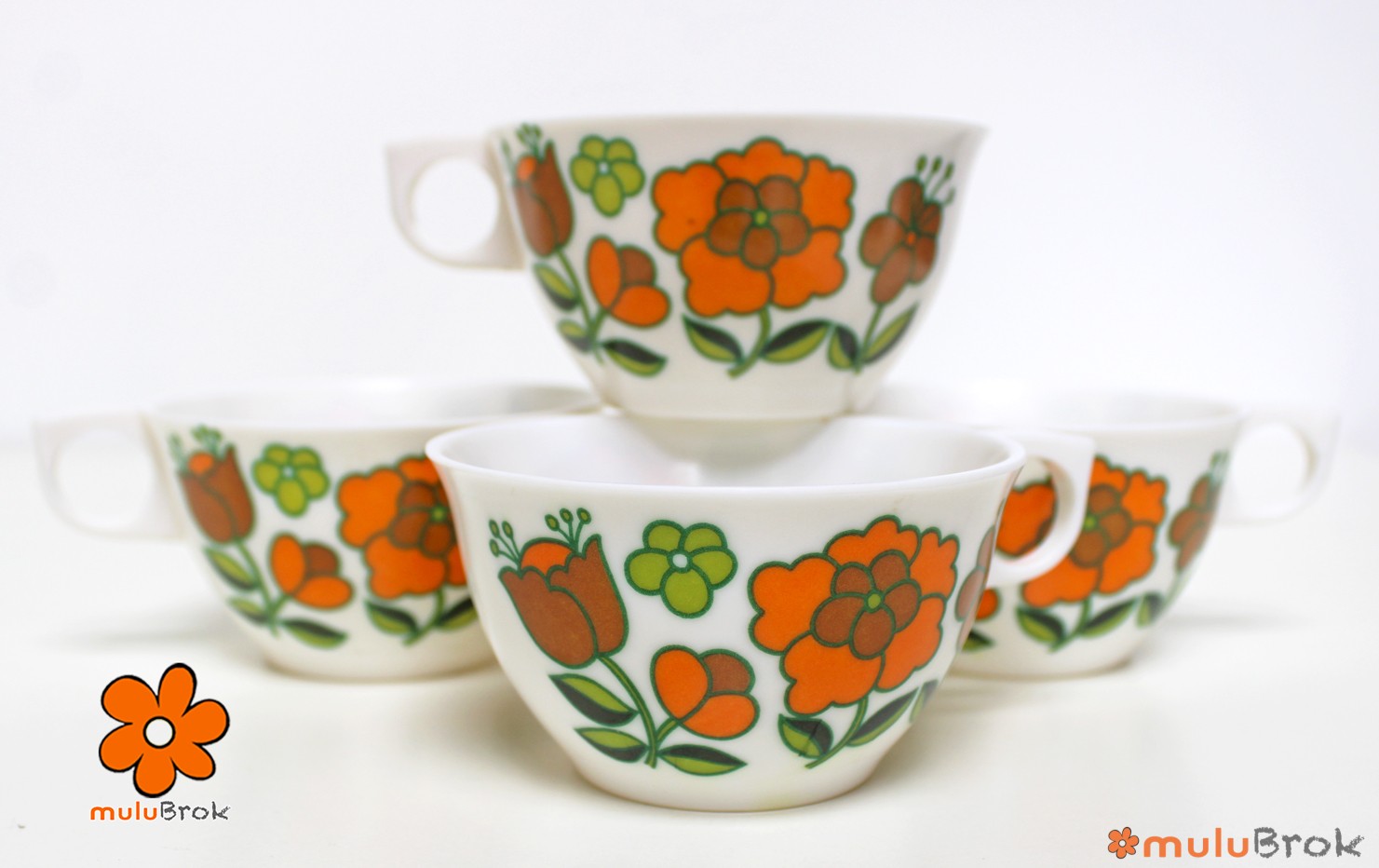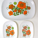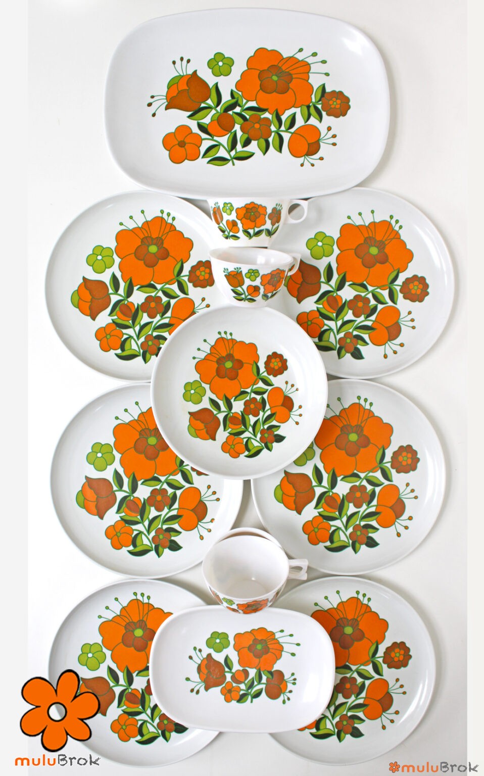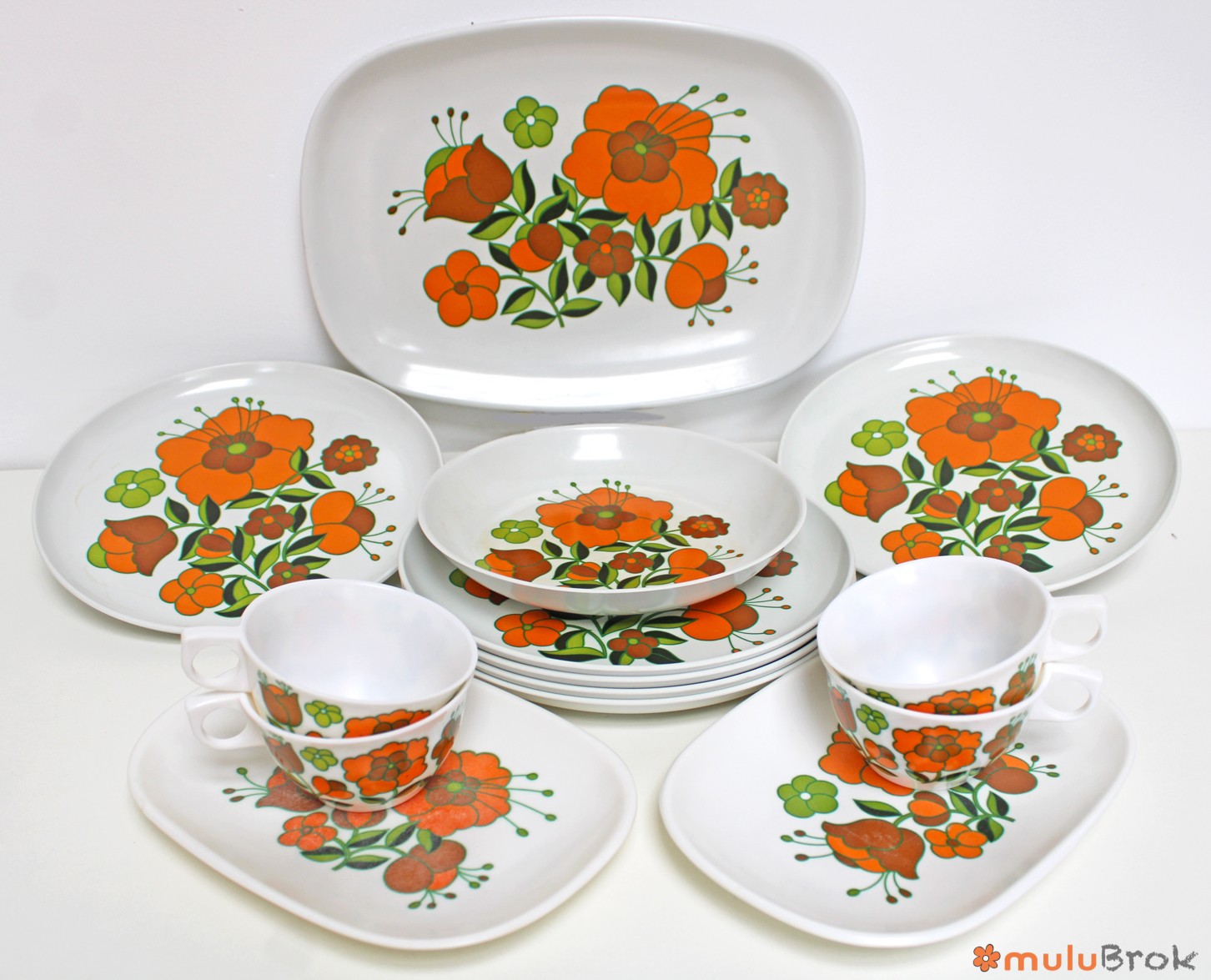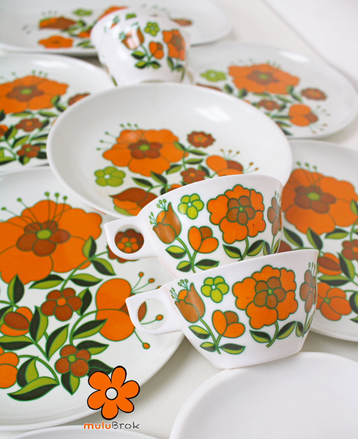 Mélaminé aux jolis motifs floraux, fleurs oranges.