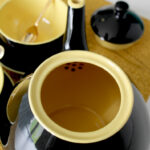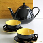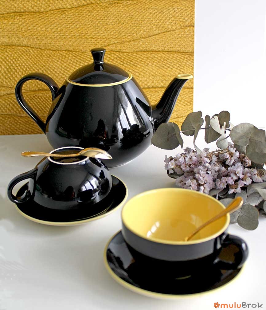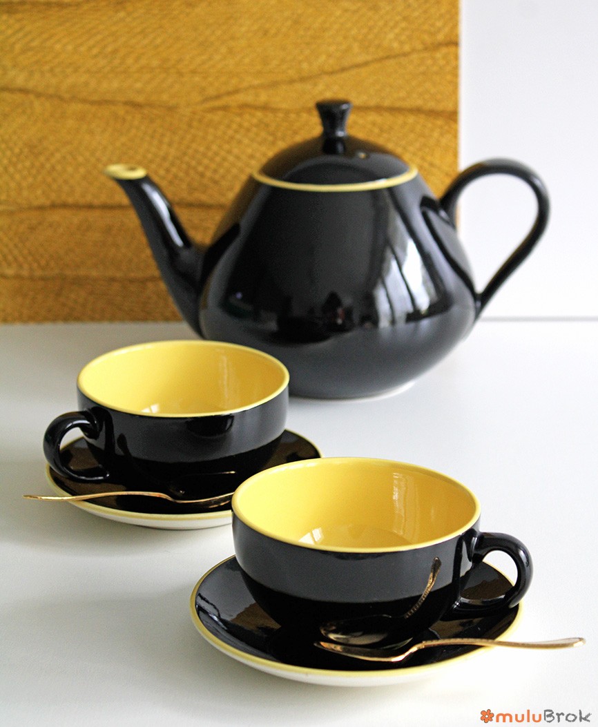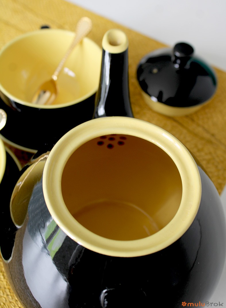 Faïence aux jolies courbes au coloris noir, intérieur jaune.